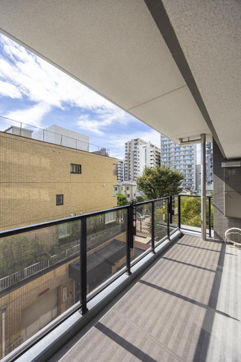 約10.60㎡のゆったりとしたバルコニーは、南東向きで陽に包まれた空間です。チェアなどを置いてくつろぎタイムにも◎。洗濯金物も設置されているので、洗濯物が干しやすくなっています。