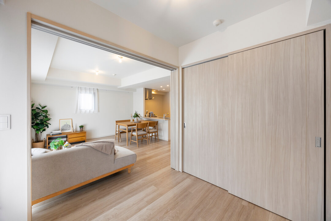 寝室3との引戸を開閉することによって、空間をフレキシブルに使うことができます。