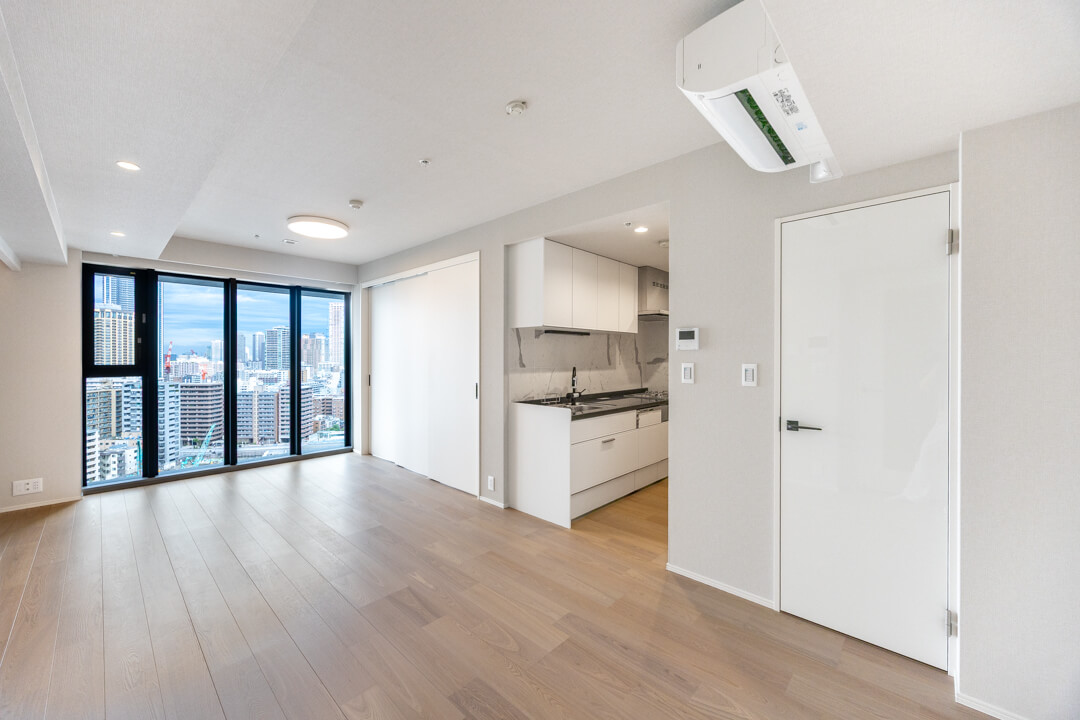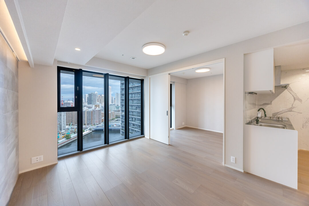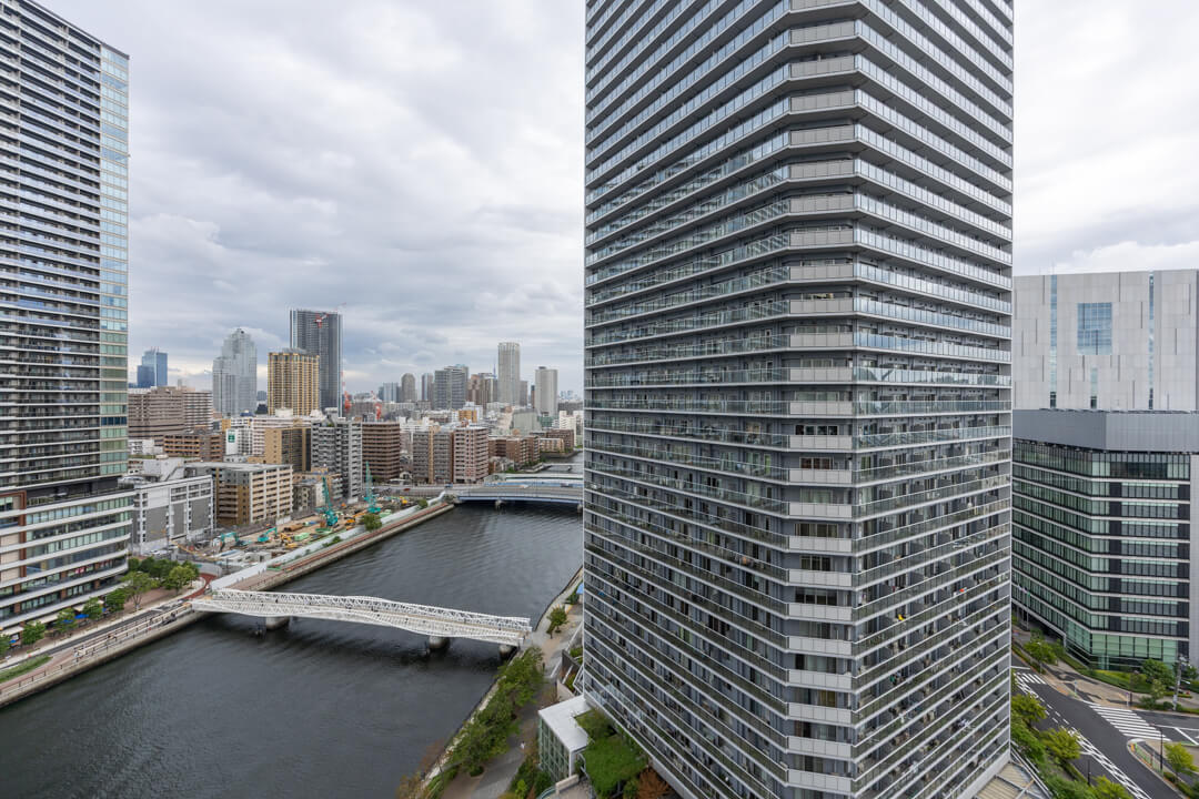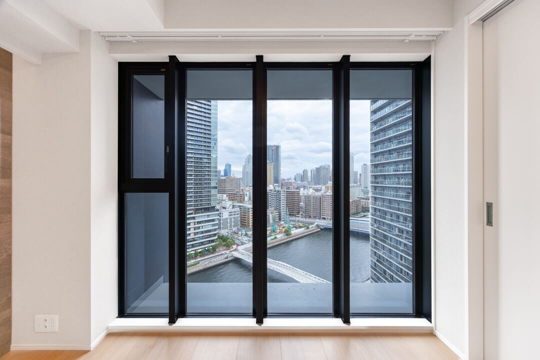 16階部の高層階につき、室内からのでも眺望良好。大きな窓からはビル群や運河などが望めます。