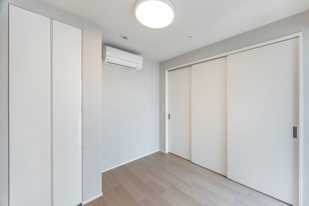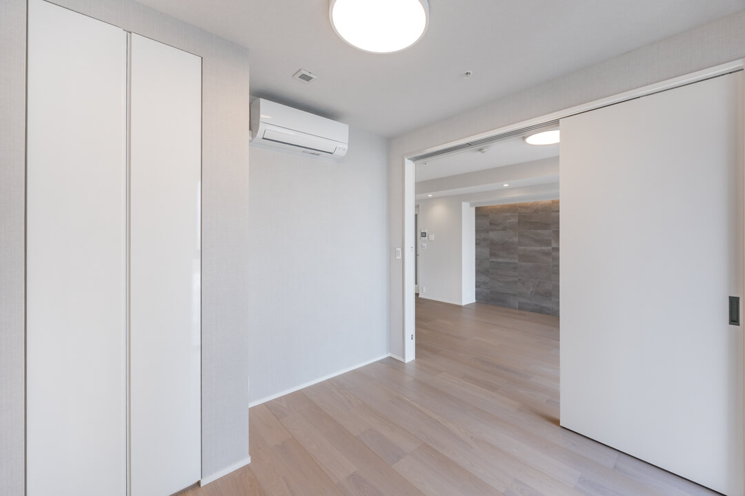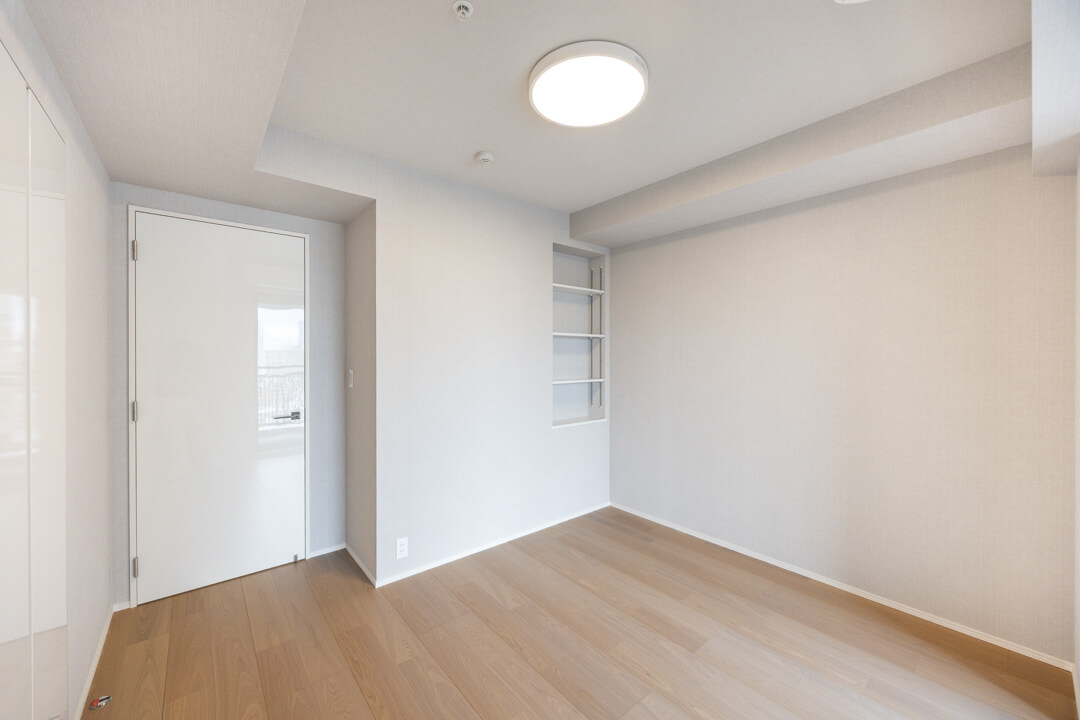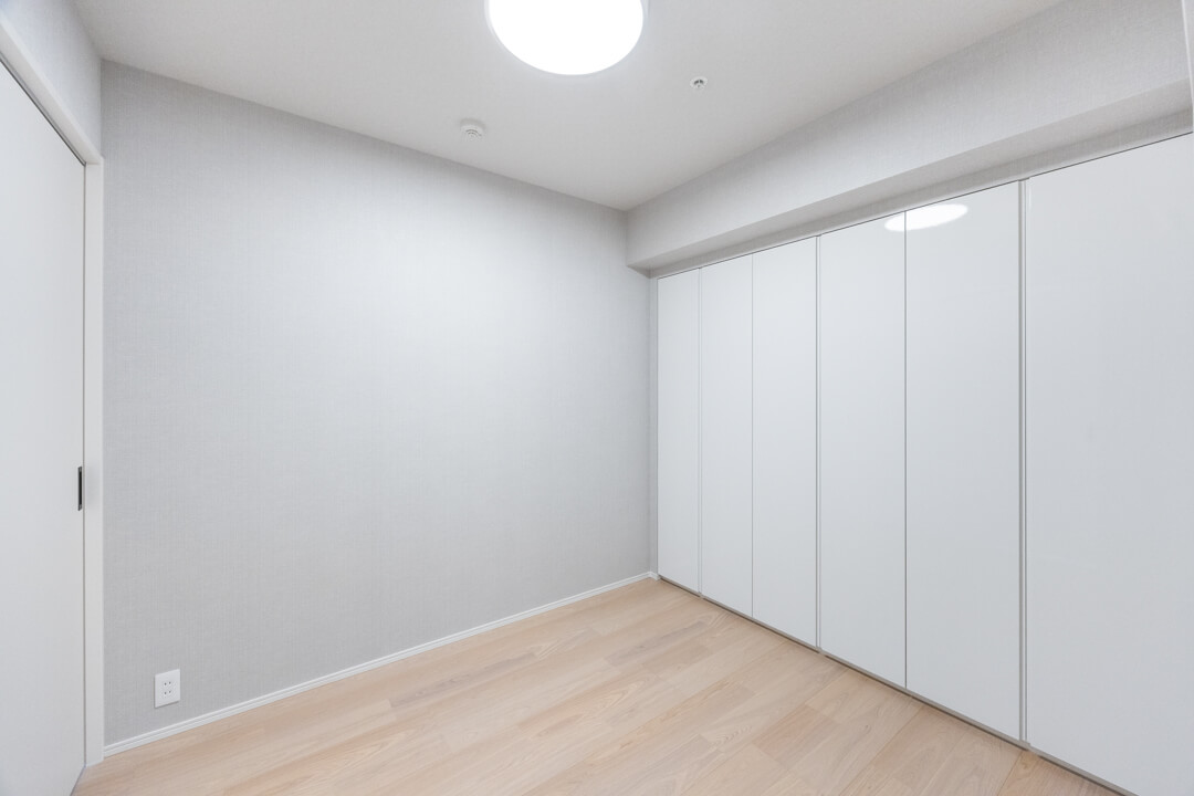 約5.0帖の洋室2。リビングから直接出入りできる動線で家族とのコミュニケーションが取りやすくなっています。クローゼット付で寝室としてはもちろん、ワークスペースや趣味部屋としても使いやすいサイズ感です。