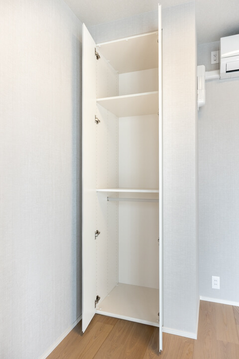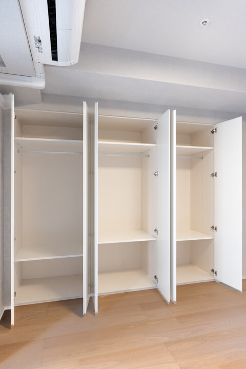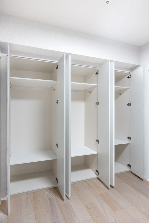 約6.5帖の洋室1。廊下に面した独立性の高い空間で、自分時間をゆっくりと過ごせます。バルコニー付きで開放感もあります。大きなクローゼット付きで、収納スペースも充実しています。