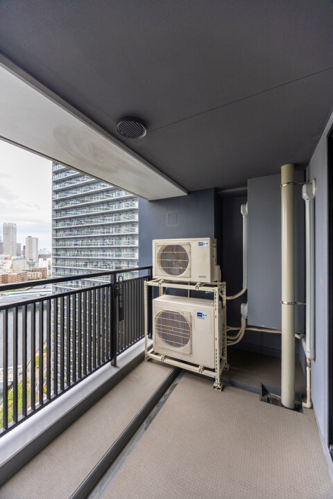 洋室1に面したバルコニー。景色が鮮明に、きれいに見える北向きです。雨風が入りにくい空間で洗濯物も安心して干せます。16階部につき眺望も良好です。