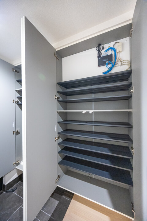 玄関には大容量のシューズボックスを完備。靴や小物類がたっぷり収納できます。