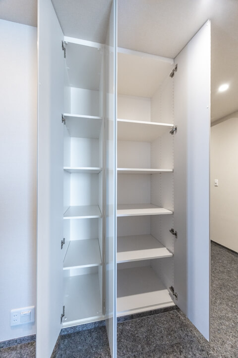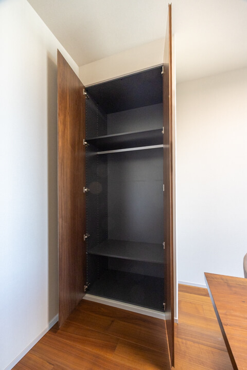 ゆとりある広さの玄関ホール。SIC(シューズインクローゼット)付きで靴や小物類がたっぷり収納できます。また、廊下にも物入が付いていて、収納スペースが充実しています。
