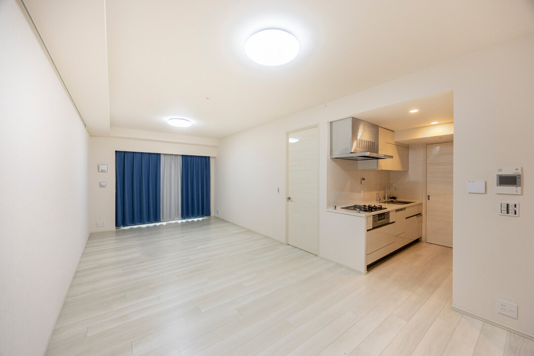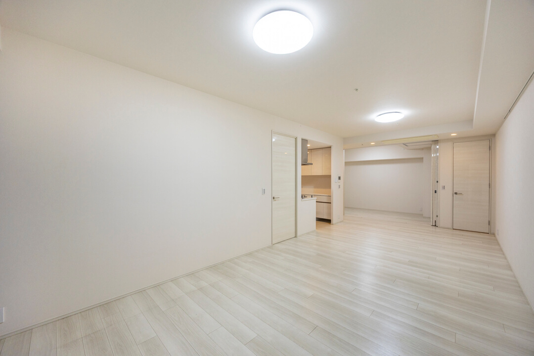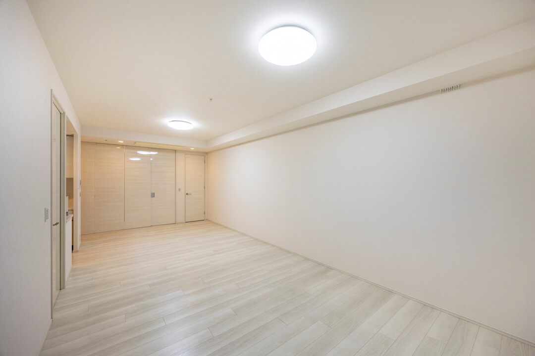約18.0帖の広々としたリビングダイニングです。大きめの家具の配置ができるので、家具選びも楽しみになりそうですよ。また、南西向きで日当たりも良好。壁面にはピクチャーレールが設置されているので、絵画やグリーンなどを飾ることができます。