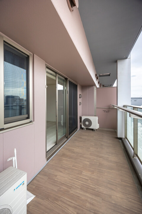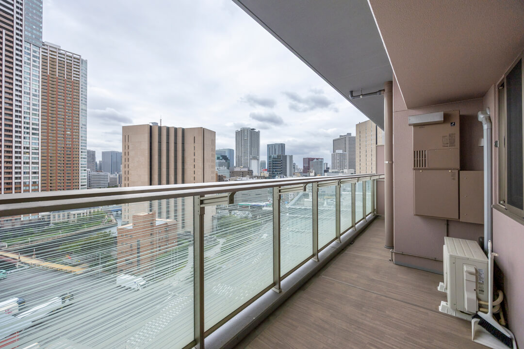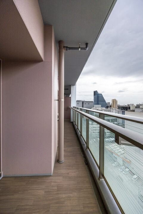 約16.80㎡の広々としたバルコニーです。チェアなどを置いて、ほっと一息つける癒しの空間にもなってくれそうですよ。南西向きで日当たりも良好。13階部分のため、目の前には抜け感のある眺望が広がっています。