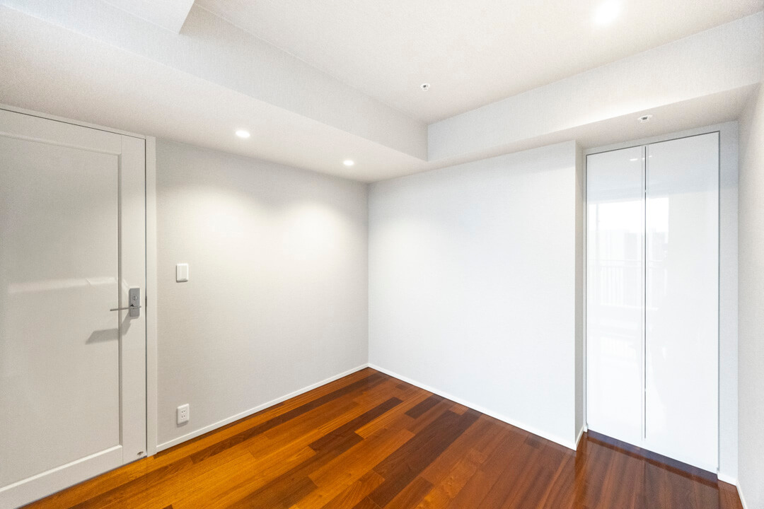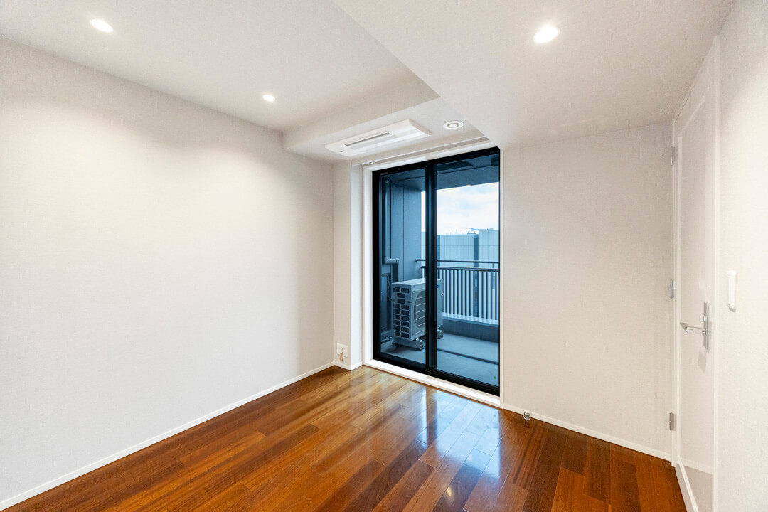 リビングダイニングから直接出入りできる約5.5帖の洋室。こちらも朝の光が心地よい東向き、バルコニー付きで開放感も感じられます。クローゼット、ビルトインエアコンも備わっています。