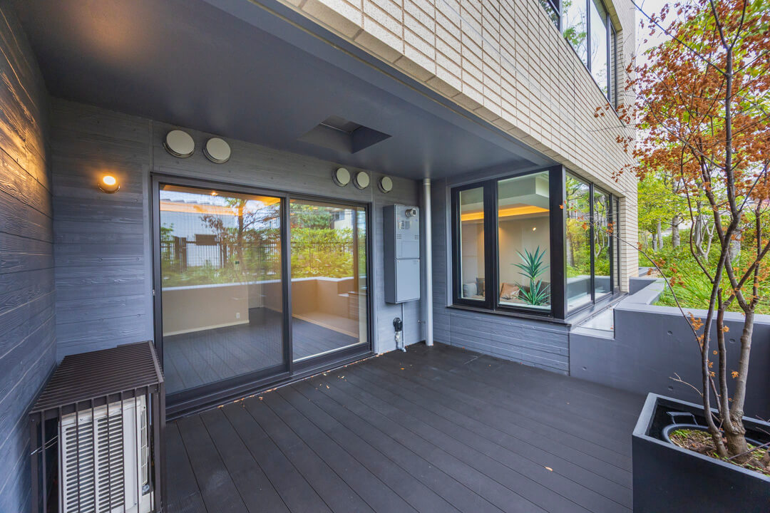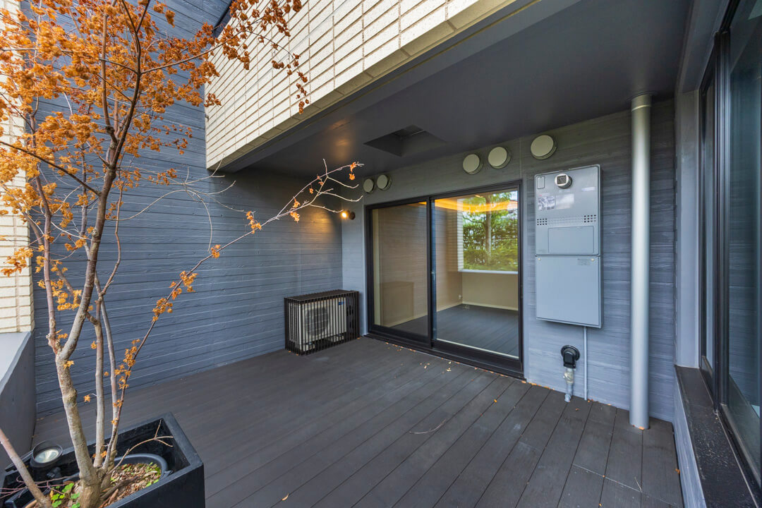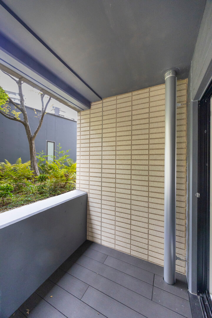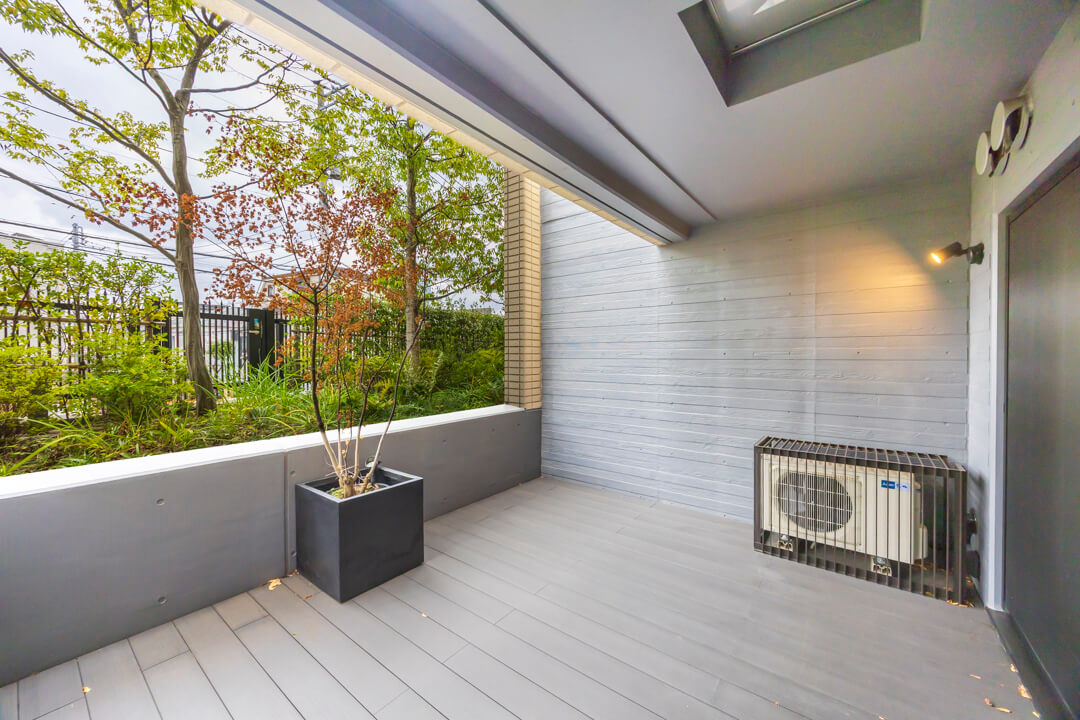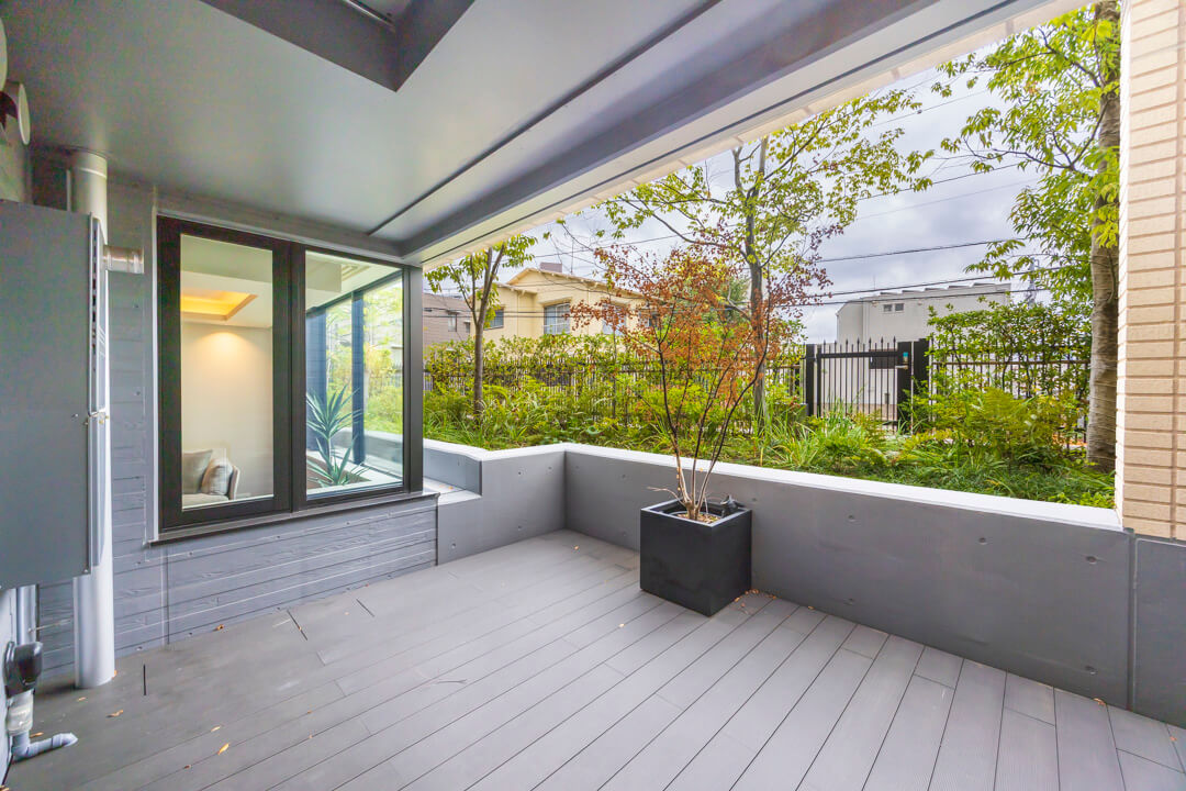 15㎡超の広々としたテラス。主寝室に接続しています。東向きの為、午前中から心地よい自然光が届きそう。テーブルを置いてティータイムやブランチ、日向ぼっこをしたり。戸建て感覚で楽しめて、家族の憩いの場所になりそうです。