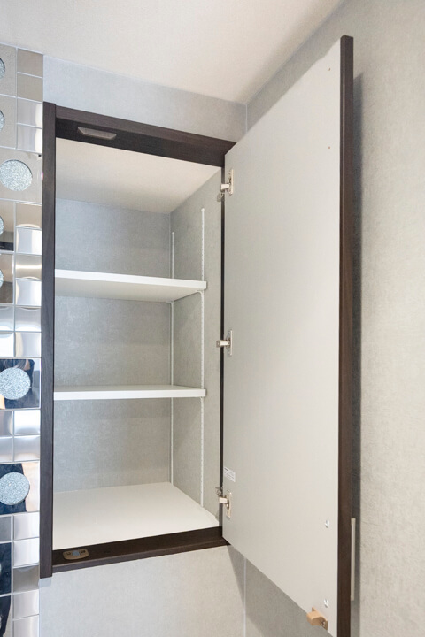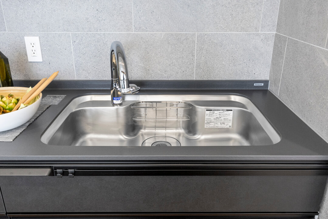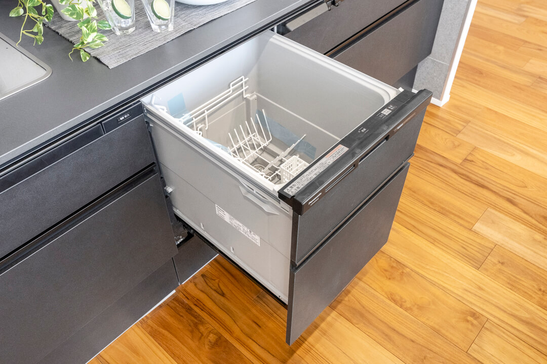 後片付けの時短が叶う食洗機を内蔵。さらに、シンクにはディスポーザーが搭載されています。料理後すぐに生ゴミを処理できて、掃除の手間を軽減◎。悪臭の原因や虫が発生する可能性を減らすこともできます。