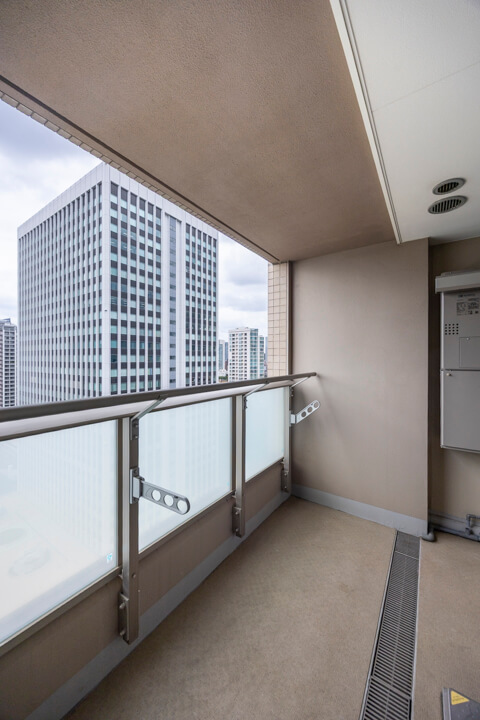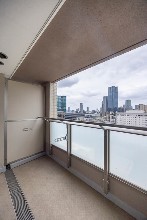 寝室1に面するバルコニー。6.80㎡です。18階部分につき抜けのある見晴らし。目の前に東京タワーを望み、贅沢な眺めを堪能できます。夜景も楽しみですね。