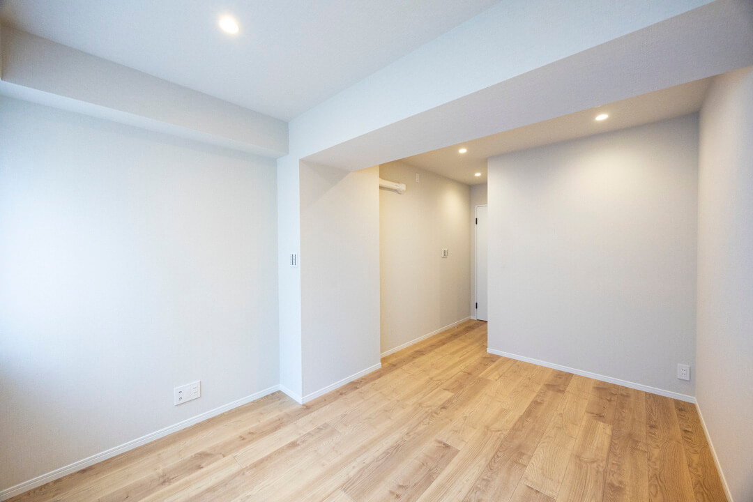 約6.0帖の洋室。南向きで自然な光が入ります。WIC(ウォークインクローゼット)は奥行きがあり、洋服をたっぷり掛けることができます。