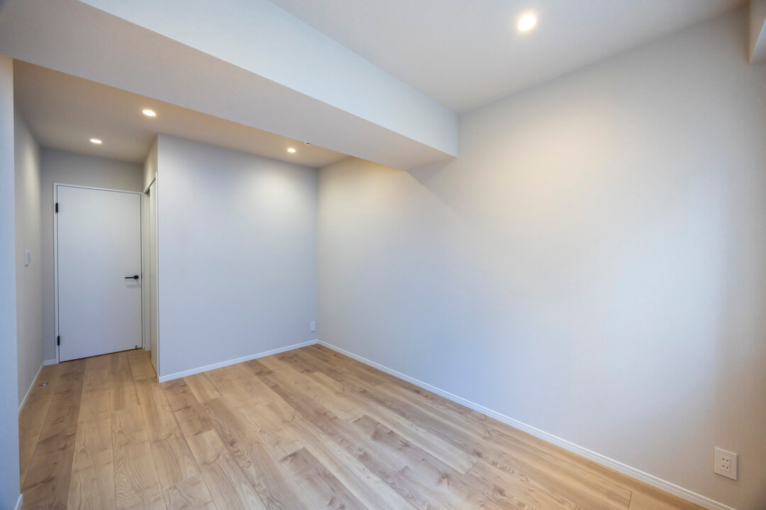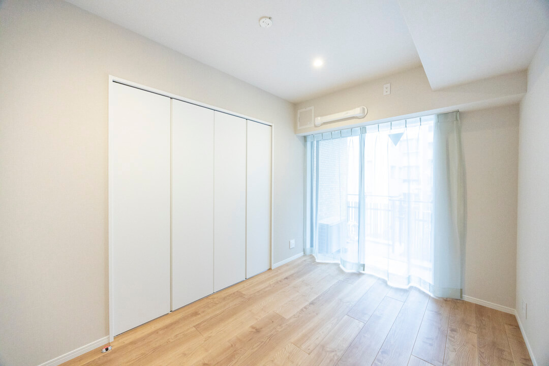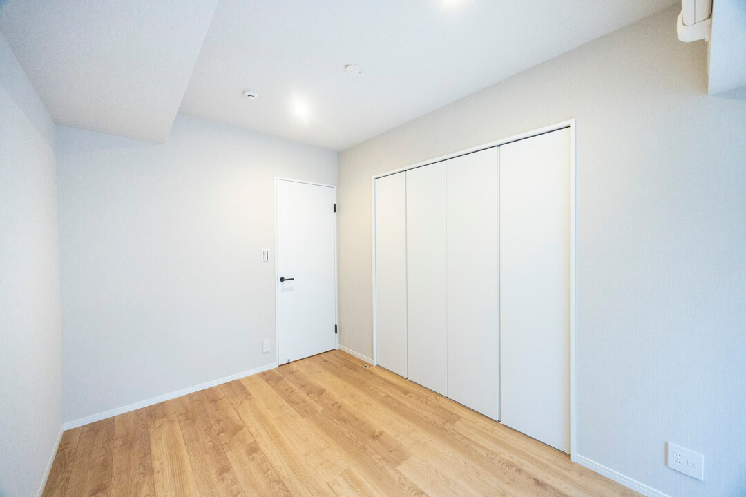 約5.3帖の洋室。洋室は全て廊下に面した独立性の高い空間で、自分時間をゆっくりと過ごせるプライベート性の高い動線が特徴的。こちらのお部屋も南向きで、バルコニーも付いています。クローゼットも備わっていますよ。