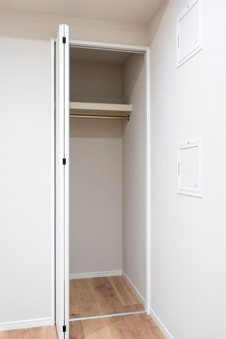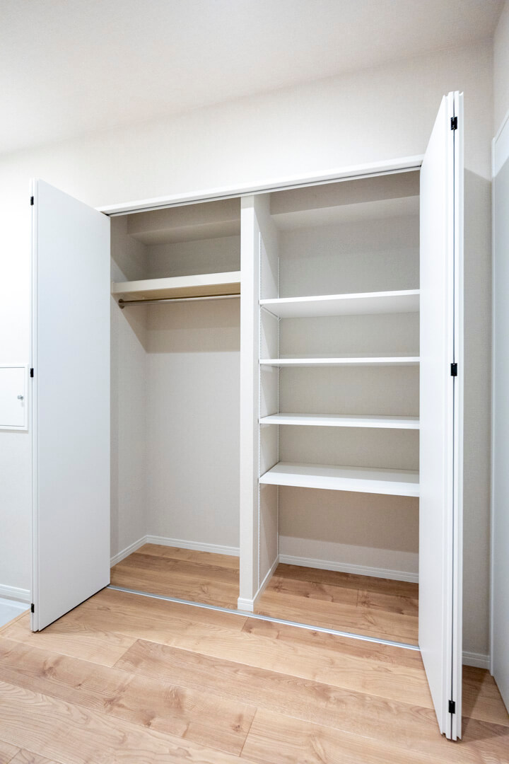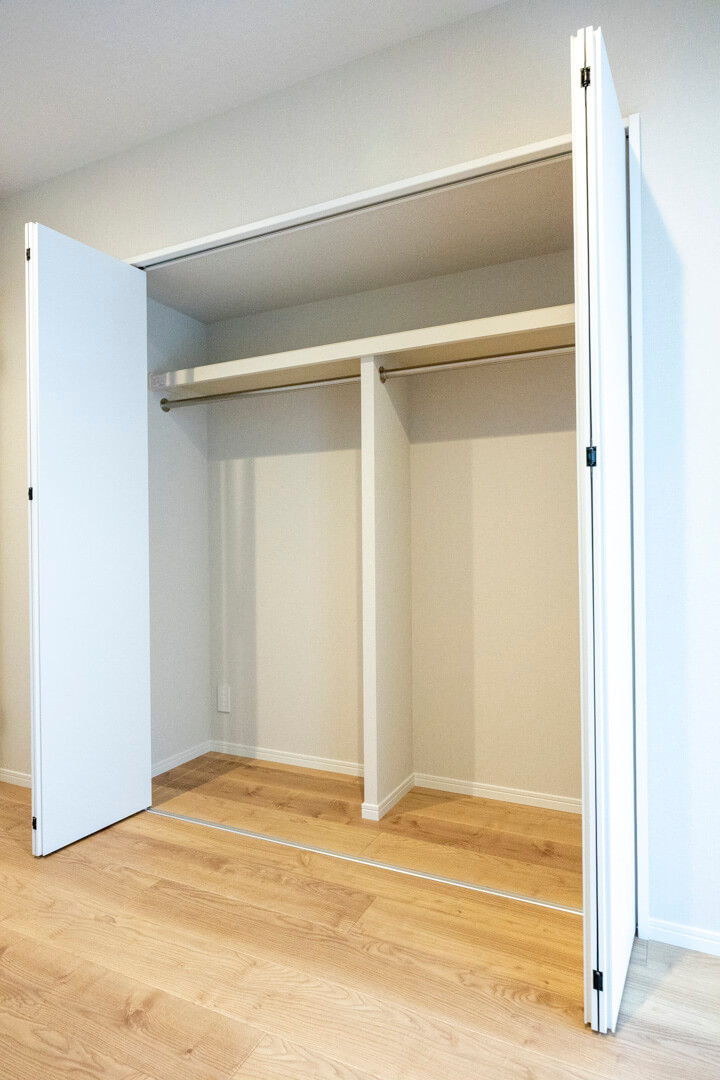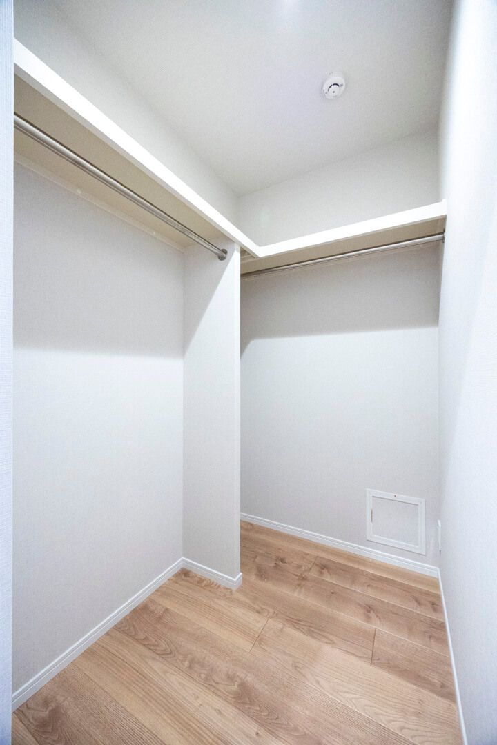 約5.3帖のゆとりある広さの納戸。クローゼットが2つ設けられています。趣味部屋や贅沢に衣装部屋として利用するのもいいですね。