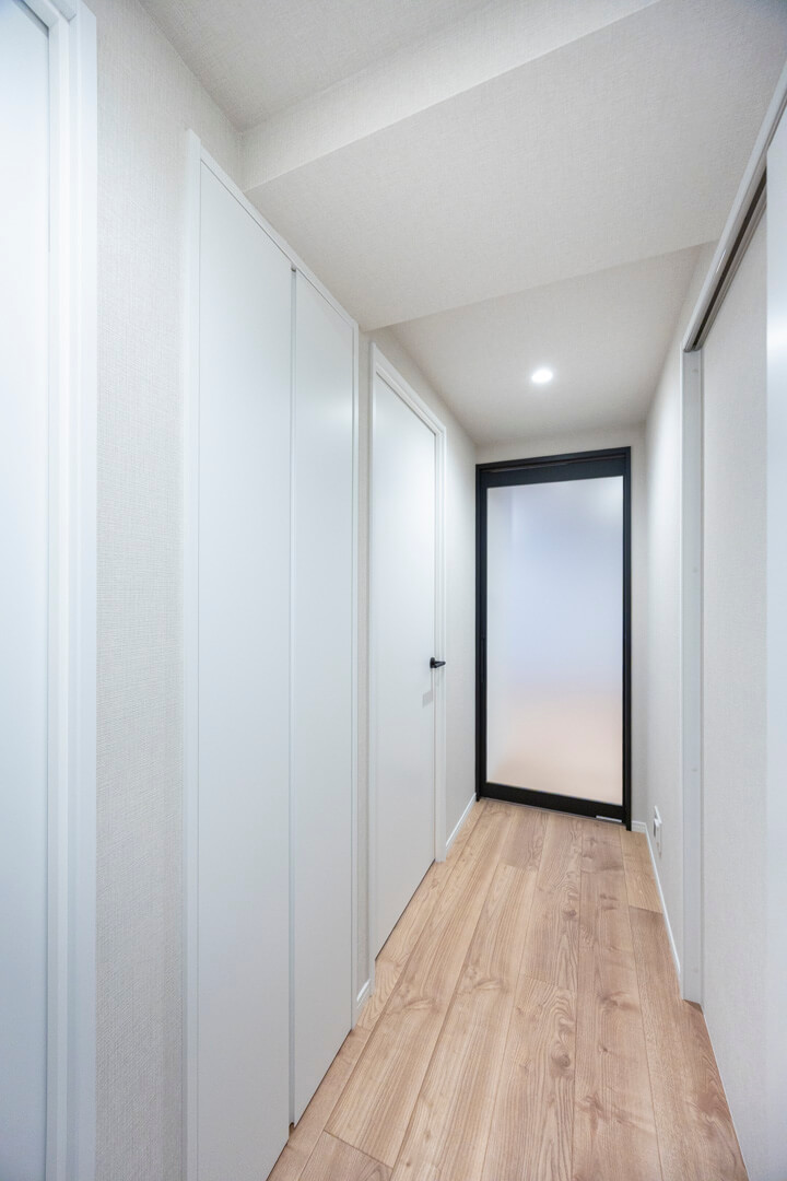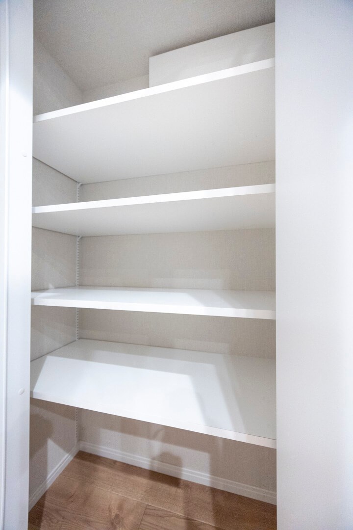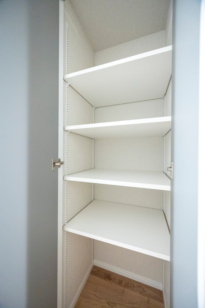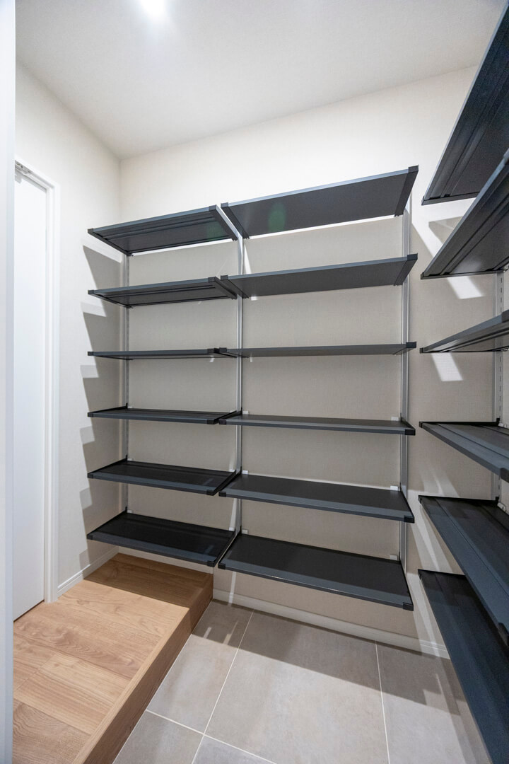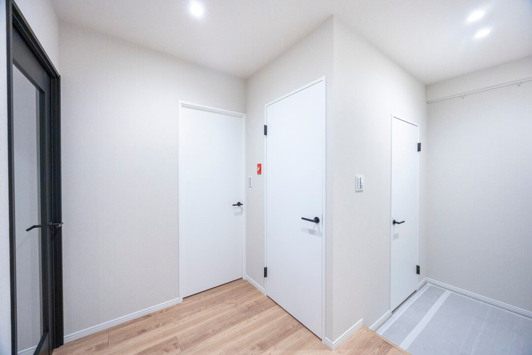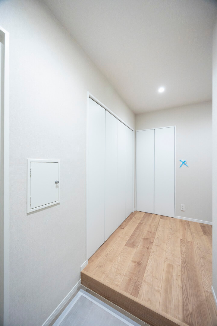 玄関ホールにはSIC(シューズインクローゼット)を完備。靴はもちろん、ベビーカーやアウトドア用品、スポーツ用品なども収納できます。玄関側、廊下側の2方向から出入りができる便利な動線もポイント。また、その他に廊下には収納スペースが3か所も備わっています。