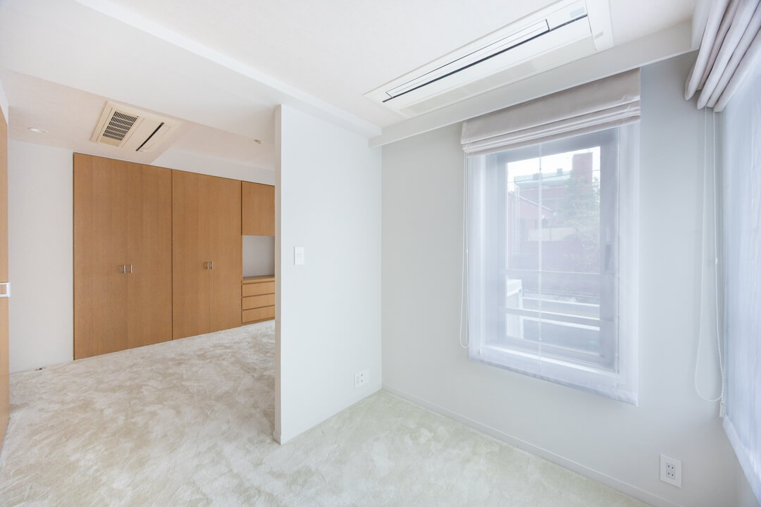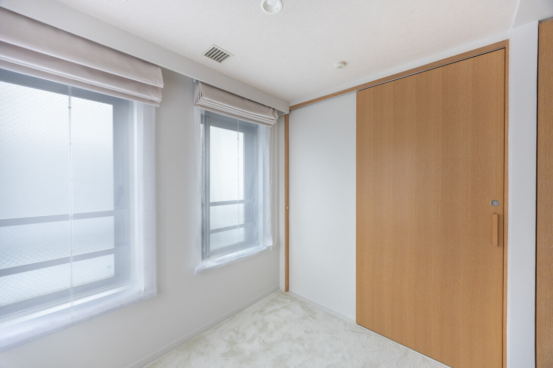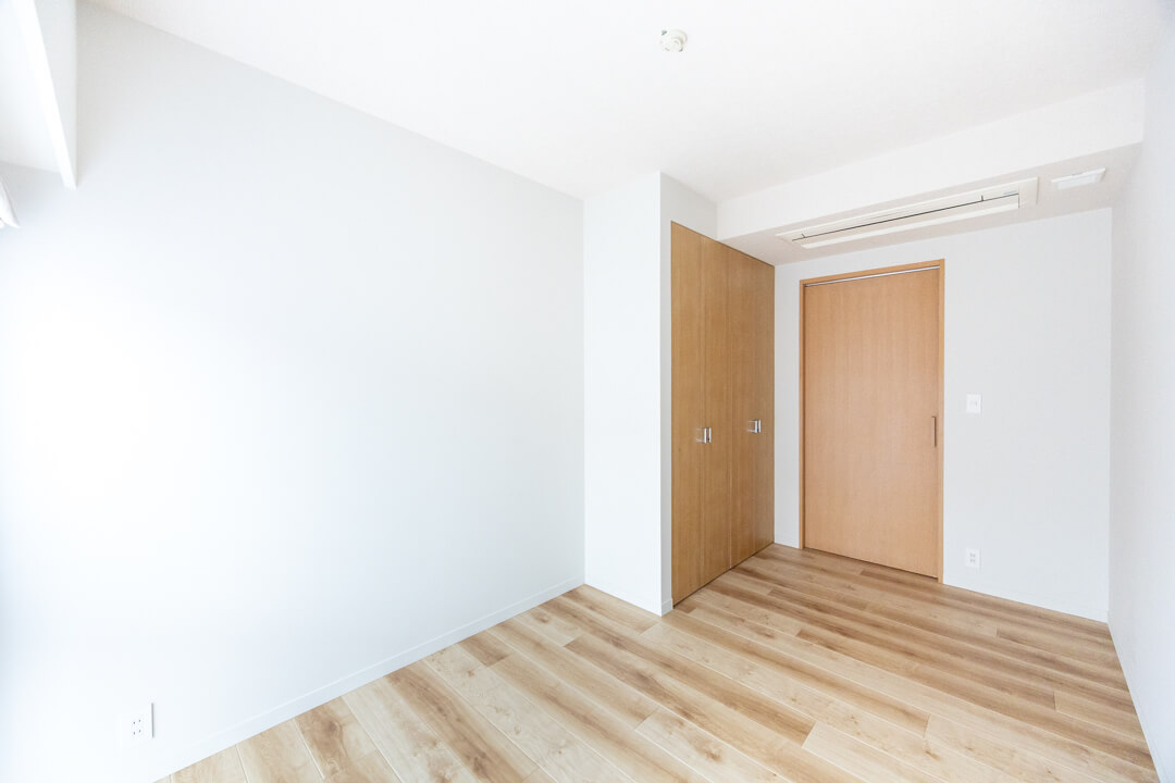 お隣にあるのは約6.0帖の寝室3。全居室6帖以上の広さがあるのは嬉しいですね。西向きの窓&クローゼット付きで、寝室としてはもちろん、ワークスペースやゲストルームとしても使い勝手の良い空間。家族構成やライフスタイルに合わせて活用してください。