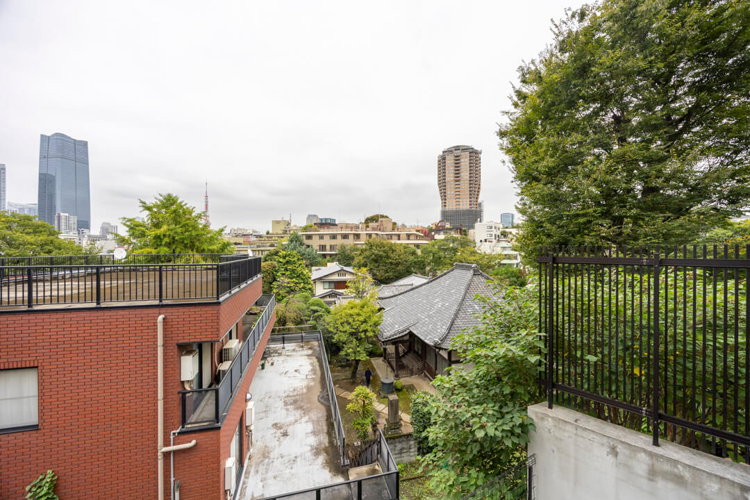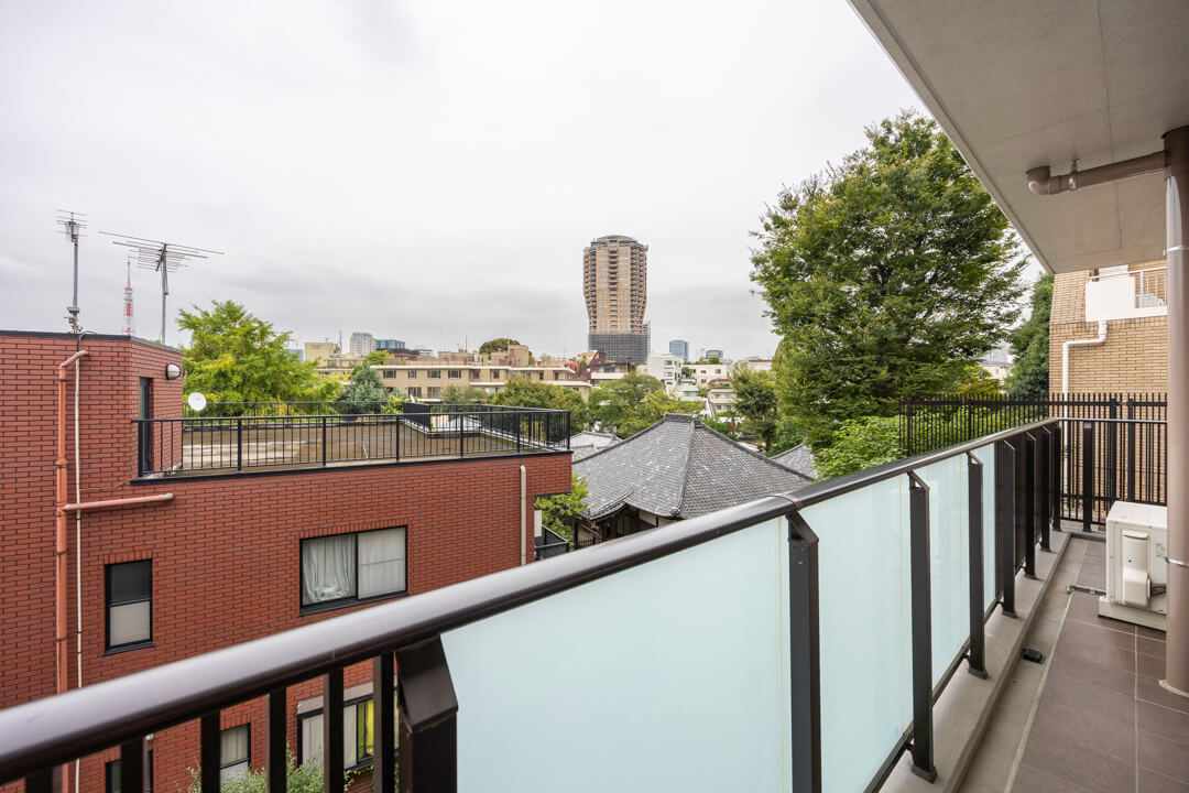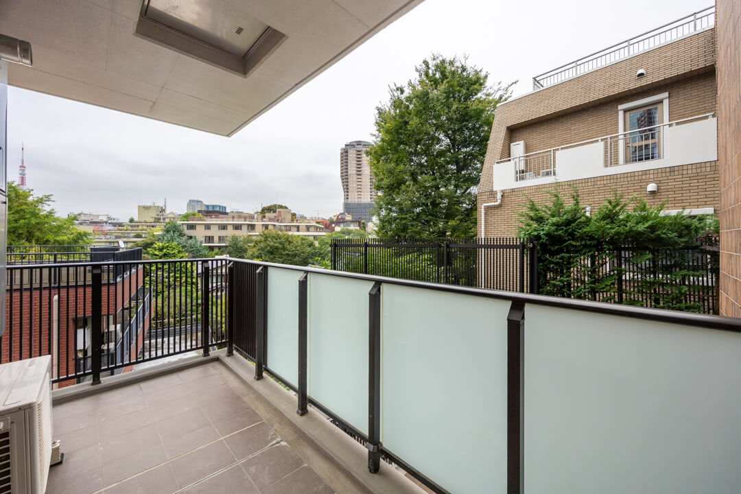 約14.39㎡のバルコニーは南東向きです。北東方面には東京タワーが望めるので、夜景も楽しむことができそうですよ。