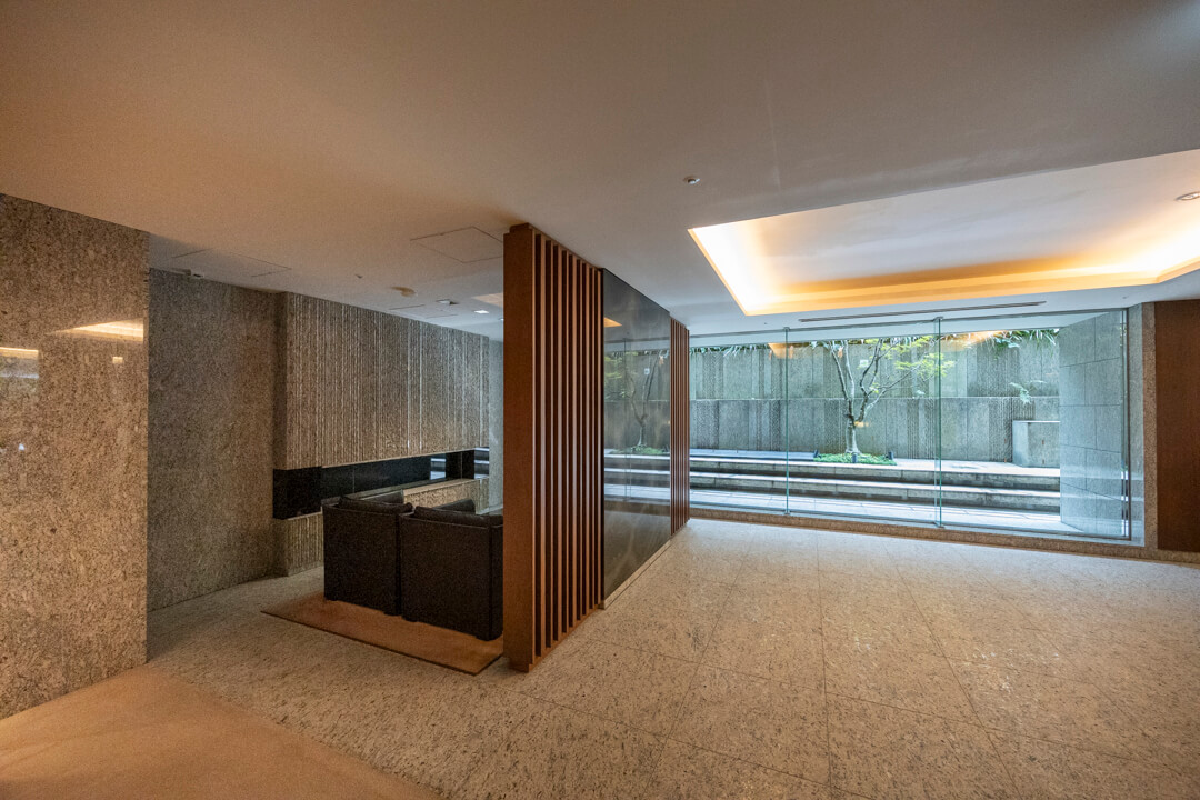 2012年(平成24年)12月に竣工した「ザ・パークハウス元麻布」。三井地所レジデンス旧分譲「ザ・パークハウス」シリーズのマンションです。鉄筋コンクリート造地下1階付地上8階建、総戸数は47戸。緑に囲まれた重厚感漂う外観が印象的です。安心の多重セキュリティシステムを導入しており、共用部はホテルライクな内廊下設計です。エレベーターは3基設置されています。24時間ゴミ出し可能なのも嬉しいポイント。細則はありますが、ペットの飼育が可能です。
