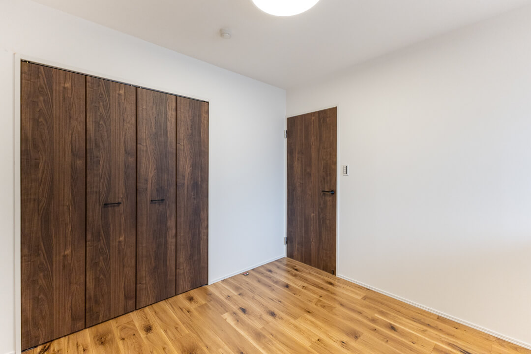 約5.0帖の洋室3。玄関ポーチに面する窓&クローゼット付きのお部屋です。廊下に面していて独立性が高く、落ち着いて過ごせそう。寝室としてはもちろん、ワークスペースや趣味部屋にするのもおすすめです。