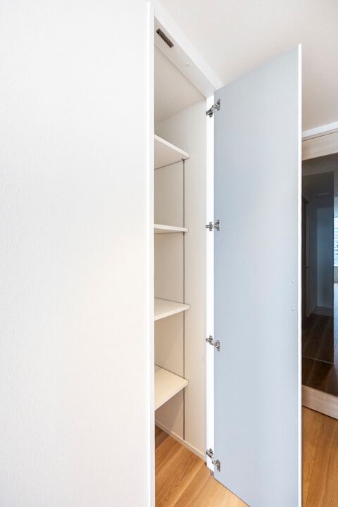 生活感が出がちな小物をすっきりと収納できる棚が造られています。