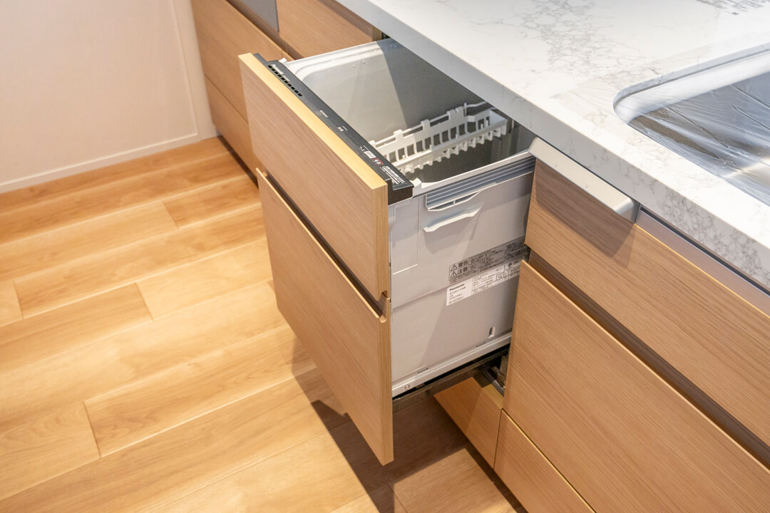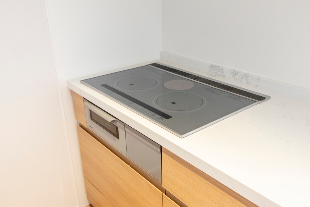 3口IHクッキングヒーター、グリル、ディスポーザー、食洗機付きと設備面も充実しています。シンクも広々としているので野菜などが洗いやすそうですよ。