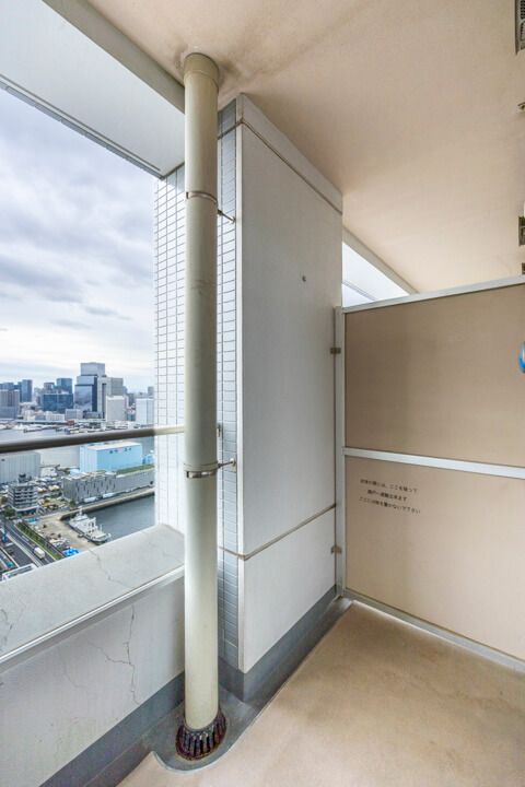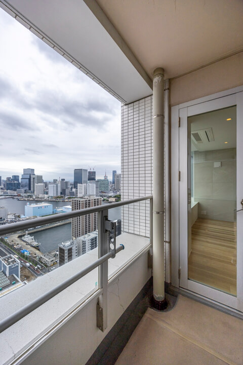 バルコニーは2ヶ所に造られています。どちらも南西向きのため日当たり良好。運河や東京湾など、水の潤いを感じる眺望を堪能できます。さらに、レインボーブリッジや東京タワーも望め、夜景も楽しめそうです。