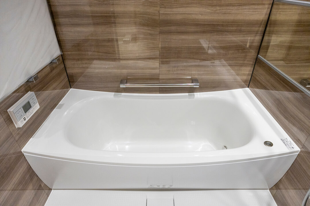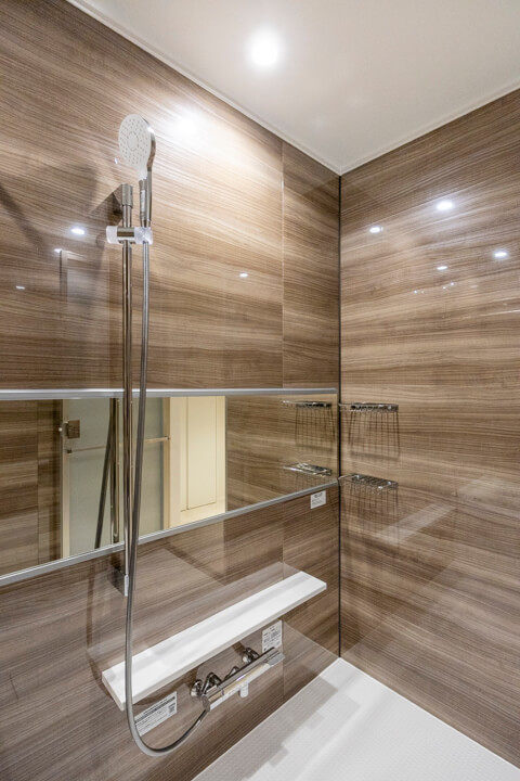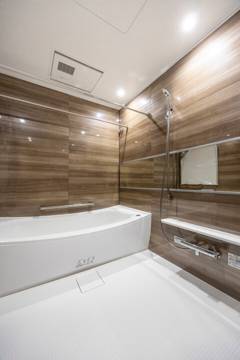 TOTO製のユニットバスは、ブララウンの壁パネルが落ち着いた雰囲気を演出してくれています。お風呂にゆっくり浸かるのが好きという方に嬉しい追い焚き機能を搭載。家族の入浴時間がずれてしまっても安心です。また、浴室乾燥機には暖房・乾燥・換気・涼風の機能がついており、一年中快適に過ごすことができます。
