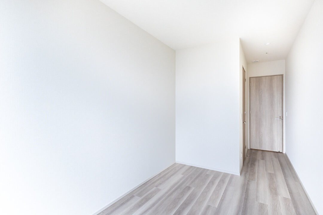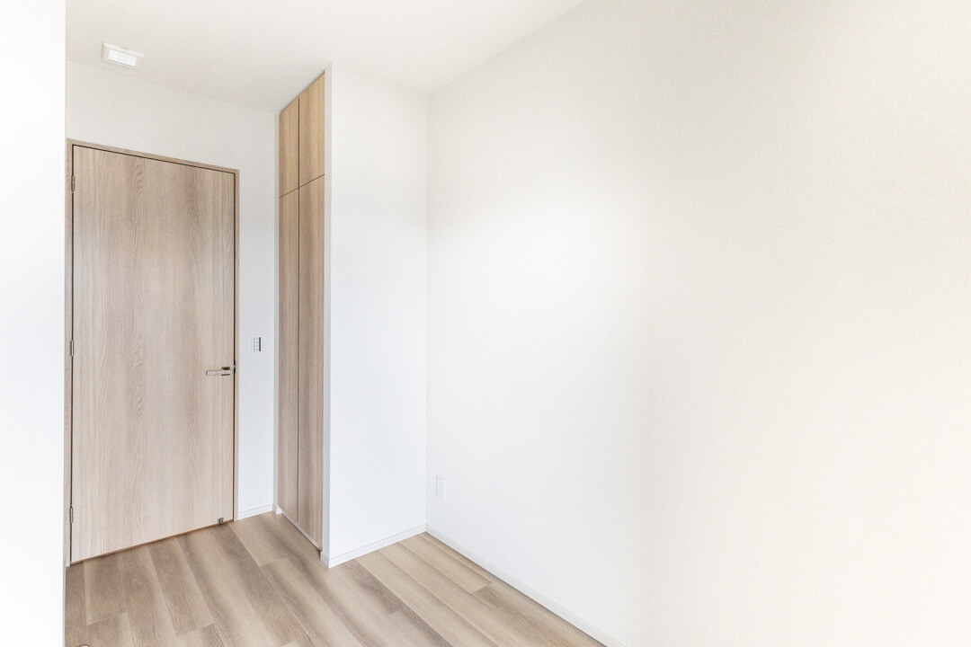 約4.1帖の洋室。洋室は全て廊下に面した独立性の高い空間で、自分時間をゆっくりと過ごせます。朝の光が心地よい東向きで、バルコニーへの出入りも可能。クローゼットも備わっています。
