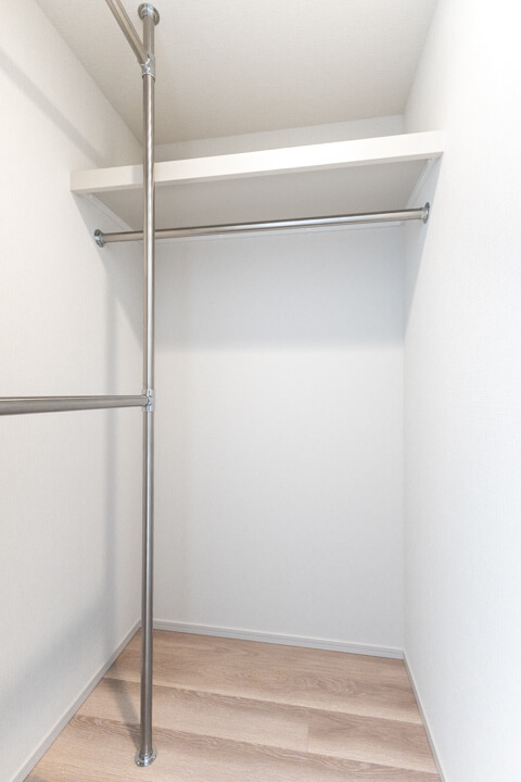約7.3帖の主寝室。窓から開放的な景色が望めるお部屋です。朝の光が心地よい東向きなので、気持ちの良い目覚めができそうですね。また、WIC(ウォークインクローゼット)付きで洋服もたっぷりと収納できます。