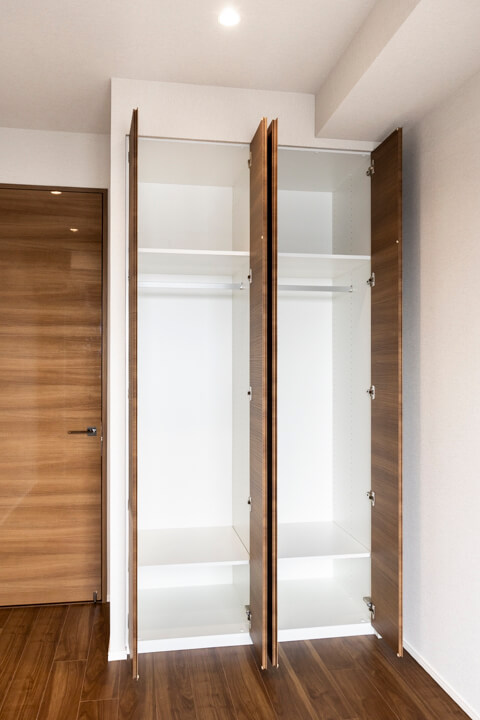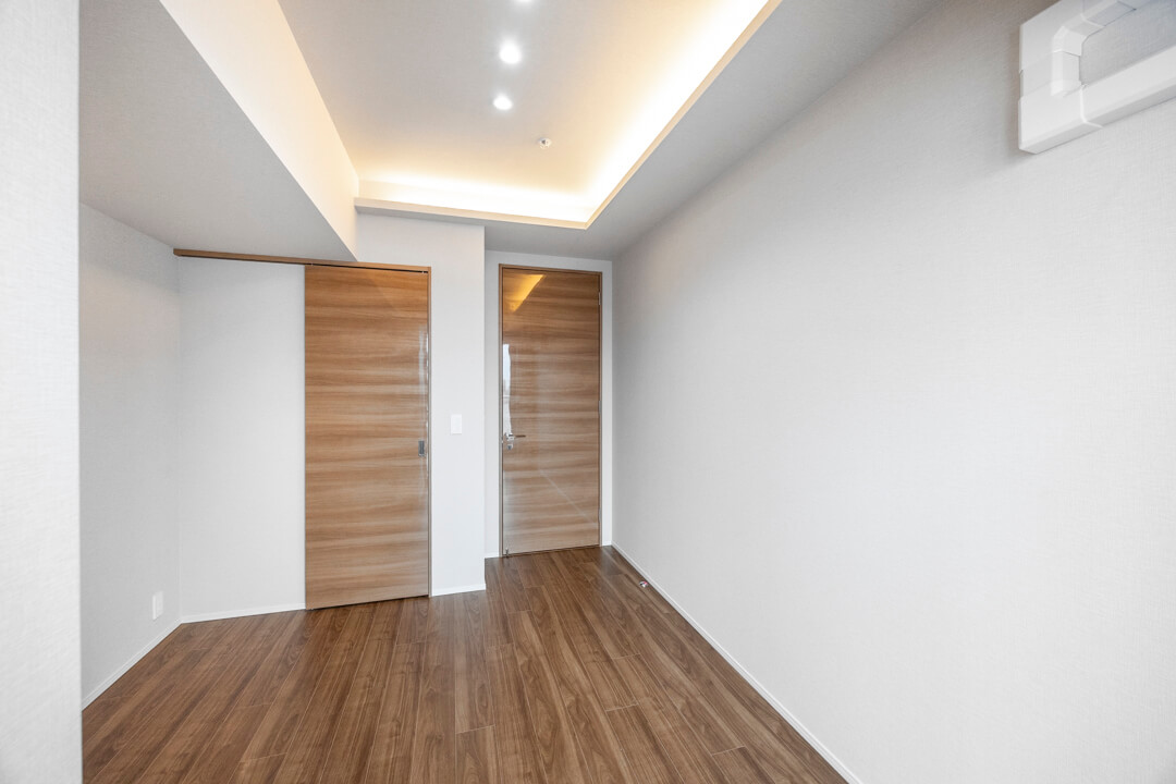 約6.5帖のゆとりがある主寝室にも間接照明が設置されていて、お部屋をくつろぎの空間に演出してくれています。また、奥行きがあるウォークインクローゼット付きのため、洋服や大きめの荷物も収納することができますよ。