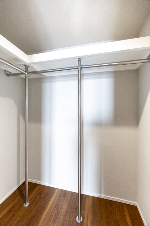 ゆとりがあって出入りがしやすい玄関には、シューズインクローゼットが造られています。中には可動棚が設置されており、たくさんの靴が収納可能。傘立てスペースもあって使い勝手良好です。