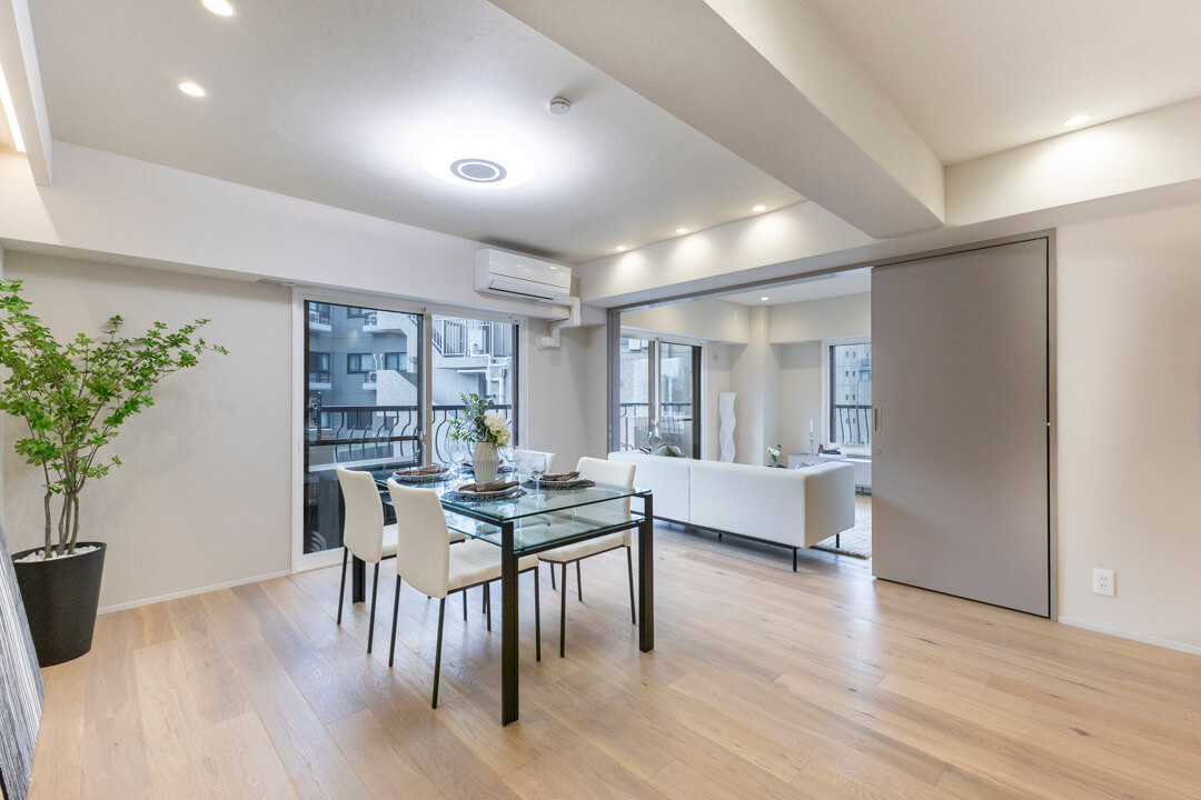 間仕切り戸を開けて洋室と繋げれば、約20.3帖の大空間に。開放感がUPし、さらに広々と過ごすことができます。ゲストが来た時に活躍しそうですね。2面採光で風通しが良くなるのも嬉しいポイントです。