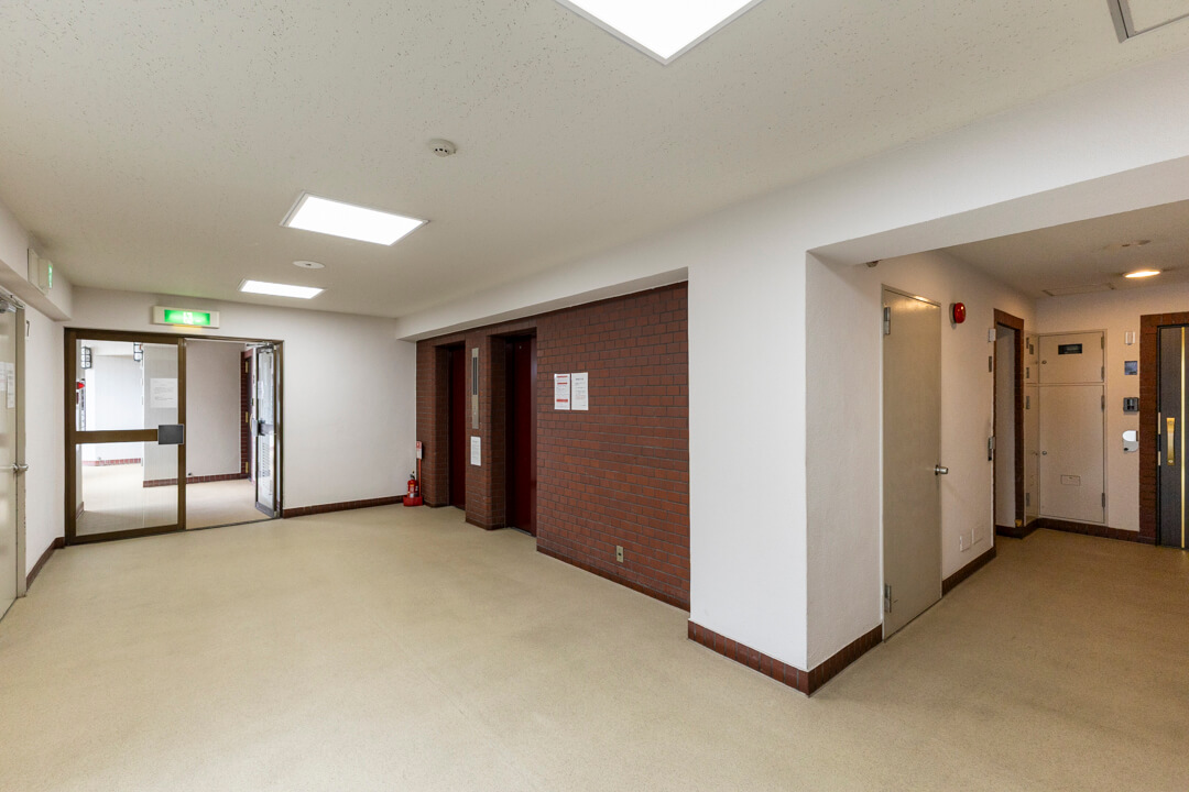 赤いレンガタイルの外観が印象的なヴィンテージマンション。1977年(昭和52年)11月に竣工しました。鉄骨鉄筋コンクリート造地下1階付地上10階建、総戸数は123戸。築年数は経っていますが、新耐震適合で安心感を得ることができます。日勤管理体制・夜間オートロック完備で暮らしの安全をサポート。広々としたエントランスは綺麗に清掃されていて、管理体制の良さがうかがえます。