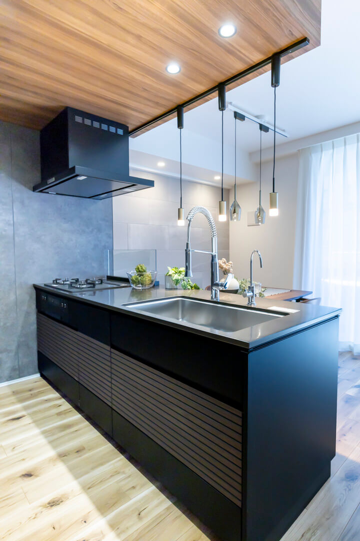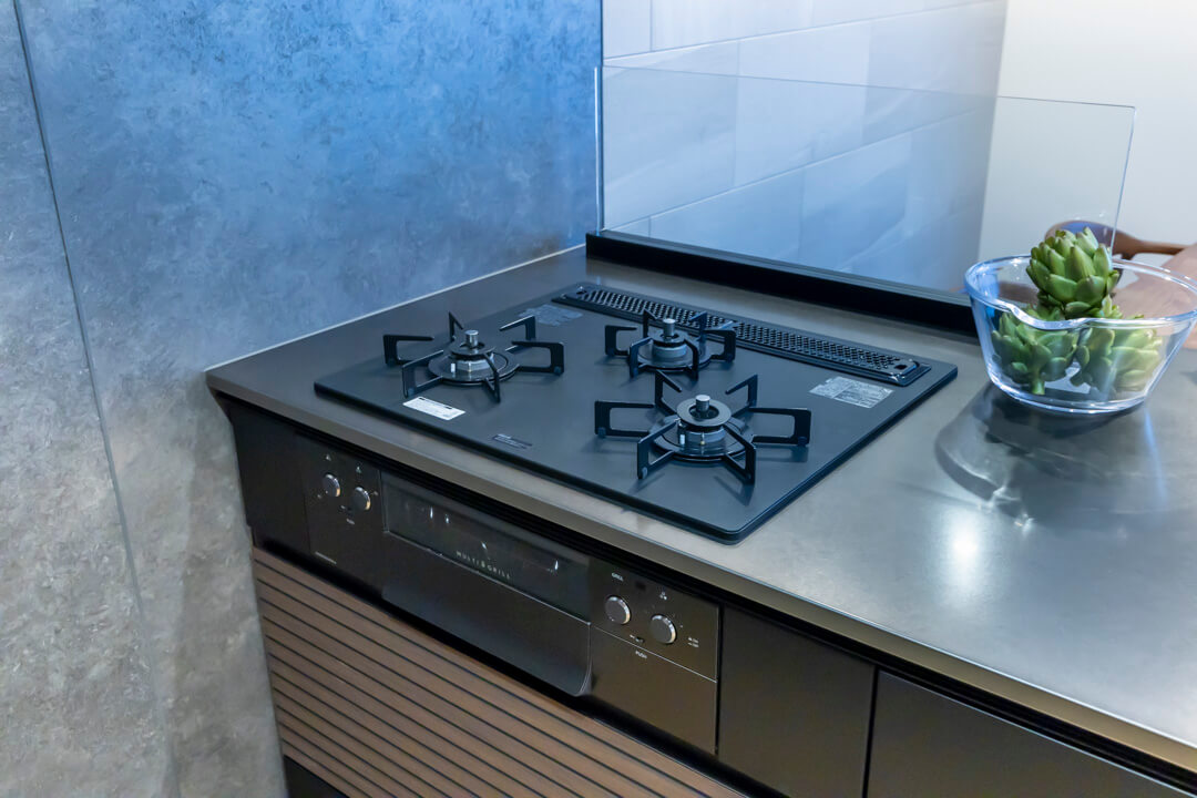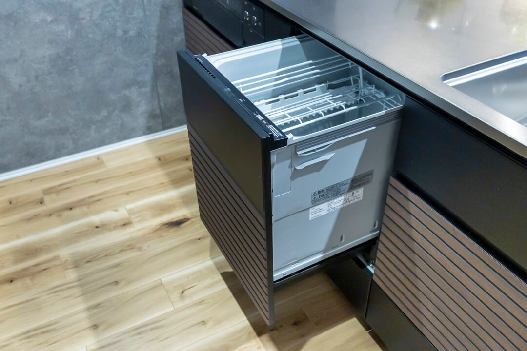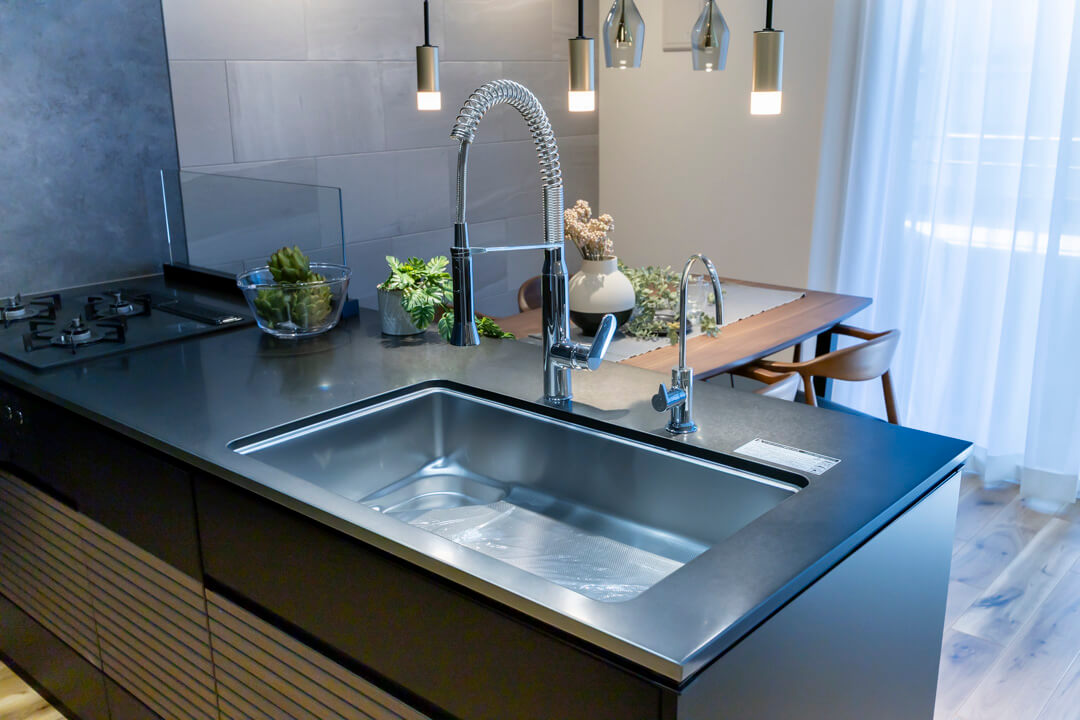 3口コンロ、グリル、食洗機付きと設備面も充実しています。シンクも広々としているので野菜などが洗いやすそうですよ。
