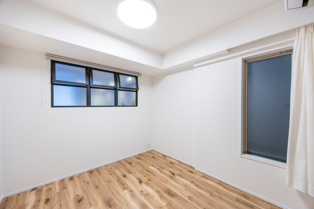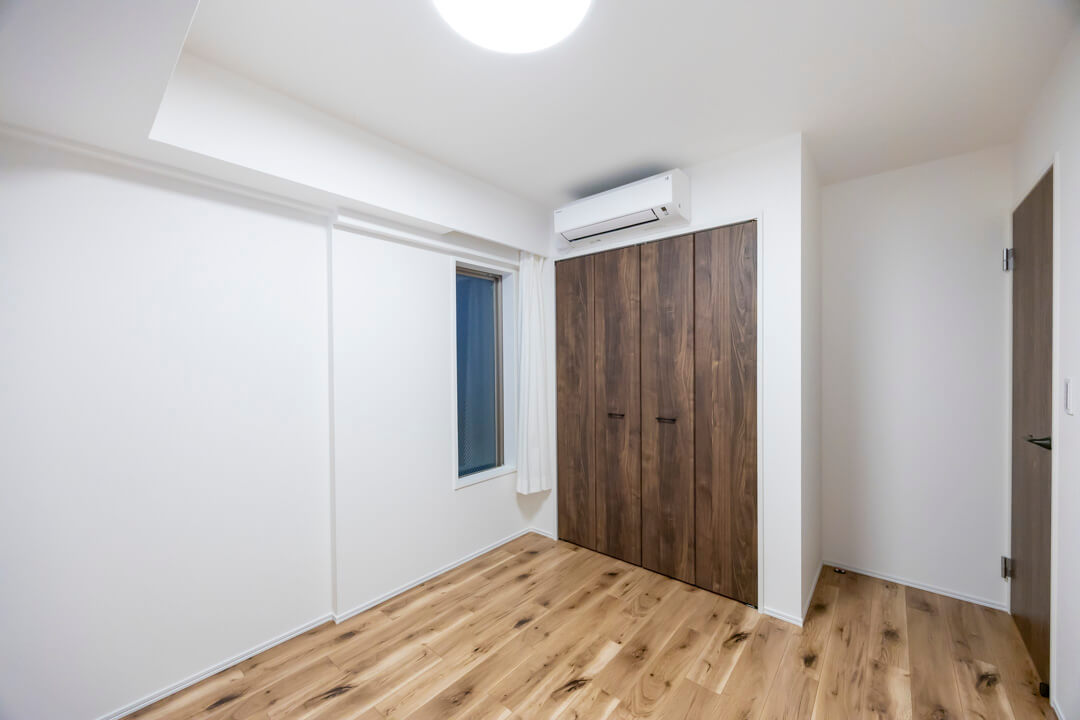約5.3帖の洋室2は書斎や趣味部屋、リモートワークなど色々な使い方ができそうです。クローゼット付きで収納スペースも確保されています。また、LDK側には内窓が造られているので、お部屋に圧迫感を与えず、光を効率良く取り込むことができますよ。