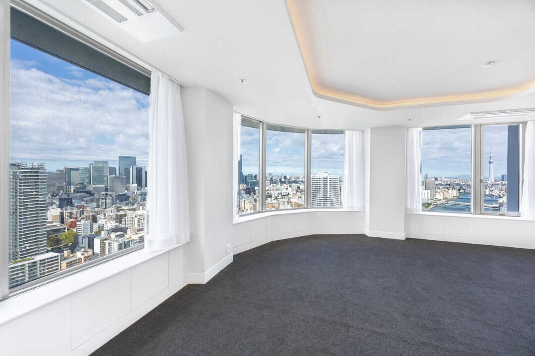 東京メトロ有楽町線「月島」駅より徒歩8分、東京のウォーターフロント開発の先駆けとなったプロジェクト「リバーシティ21」の一画に位置しています。地上40階建て336戸のビックコミュニティのマンションで、敷地内にはコンビニやスーパーがあって便利な住環境となっています。お部屋は36階部分の角部屋3LDK。専有面積146㎡の広々とした空間で、隅田川を眼下に東京スカイツリーや東京タワーを望む、水と光が織りなす美景を一望できます。