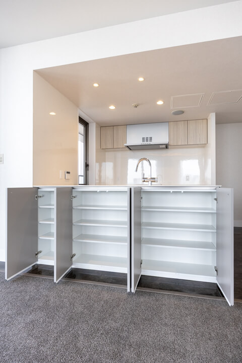 キッチンは、動線が最小限に済んで料理が捗るⅡ型。作業スペースや収納スペースが広めに取れるのも嬉しいポイントです。また、対面式にもなっているので、家族や来客とのコミュニケーションが取りやすくて◎。
