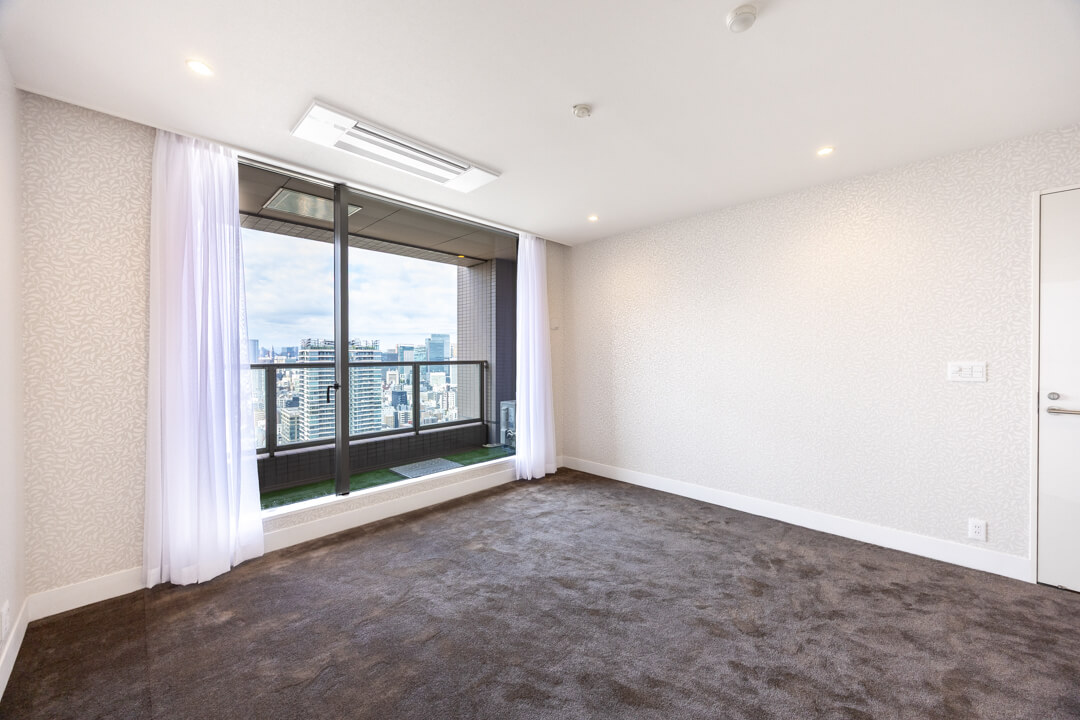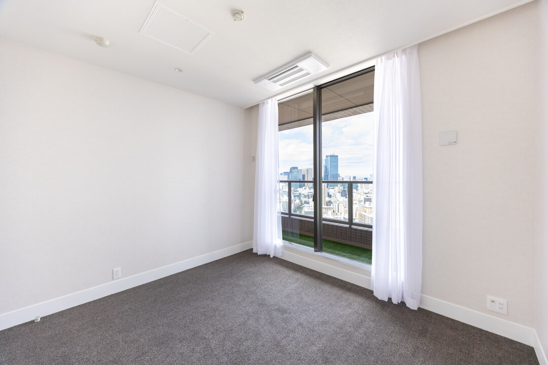 約11.5帖の寝室1は広々としていて主寝室に良さそうなお部屋です。約2.6帖のウォークインクローゼットやクローゼットがあって収納スペースが豊富。窓からは北側のバルコニーに出ることができ、東京タワー方面の景色を楽しむことができますよ。気分転換にもぴったりです。
