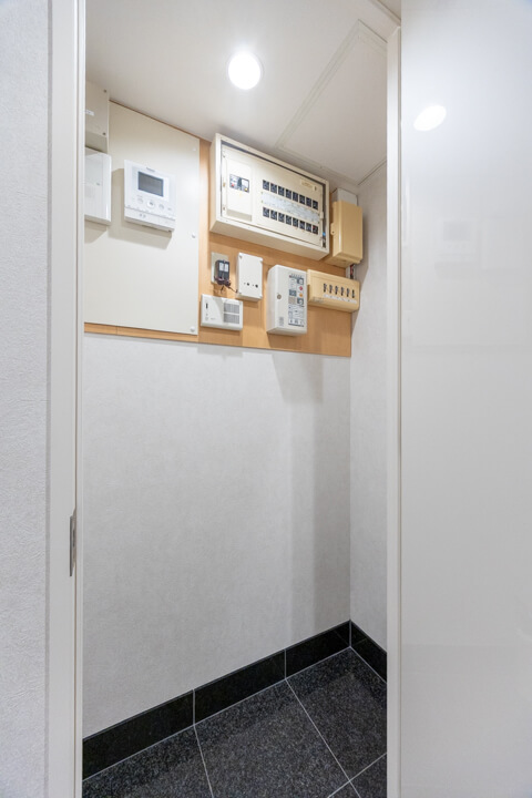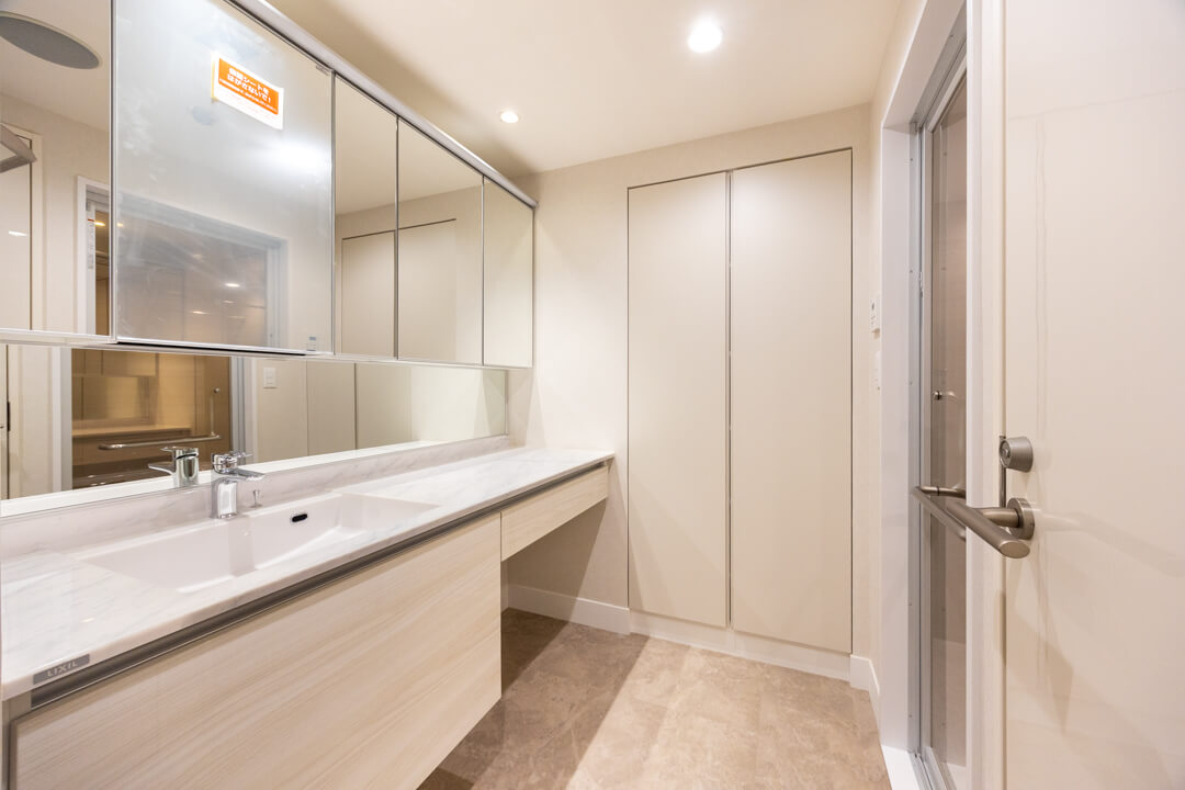 洗面室や浴室、トイレへもアクセスができます。ドレッサーのように使えるLIXIL製の洗面化粧台は朝の支度にも便利で、1620sizeでゆっくり入浴できる浴室には乾燥機と追い焚きが搭載されています。オーバーヘッドシャワーも付いているのでたっぷりと全身で湯を浴びることができますよ。リラックス効果や保温効果もありますよ。