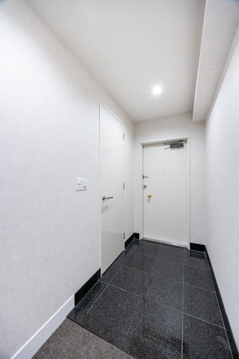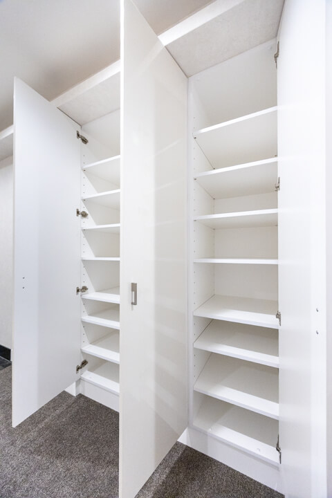 白を基調とした清潔感のある玄関・廊下です。収納スペースが確保されており、小物が大きめの荷物も収納できそうですよ。また、ユーティリティが造られているので、生活感を隠すこともできます。