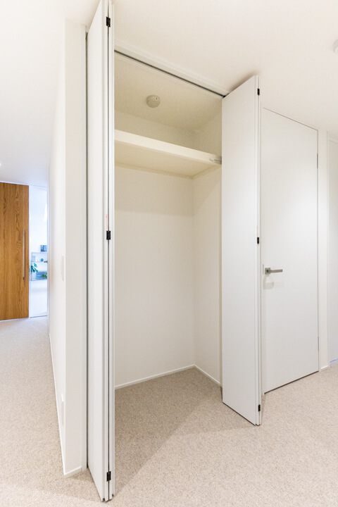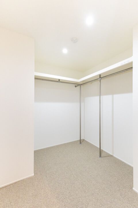 約3.1帖の大型WIC(ウォークインクローゼット)があり、収納性に優れています。衣類はもちろん、トランクケースやゴルフバッグといった大きな荷物も収納可能◎。すっきり片付けて、居室空間を有効活用できます。
