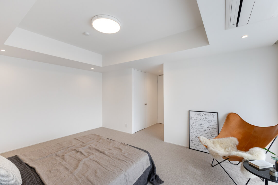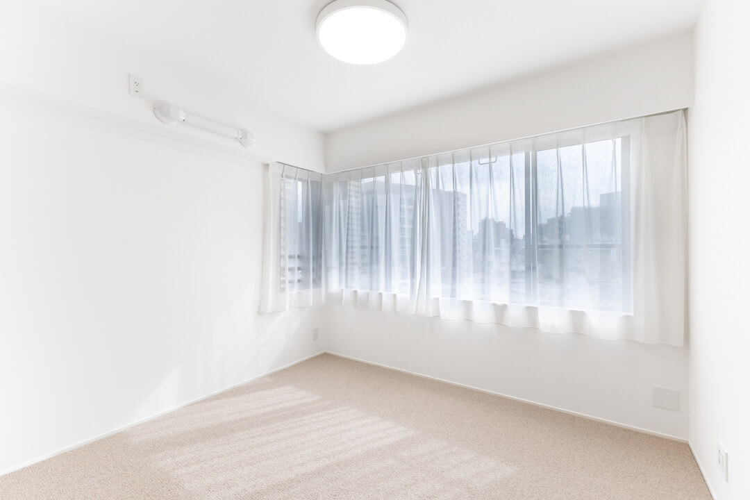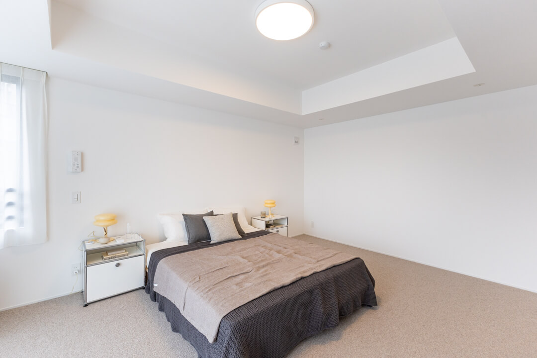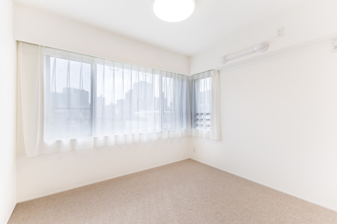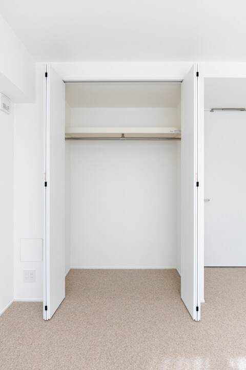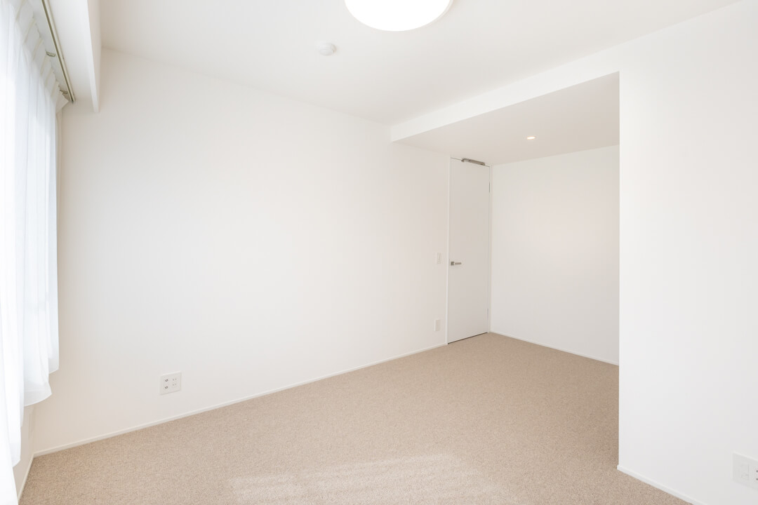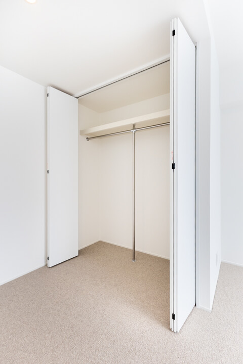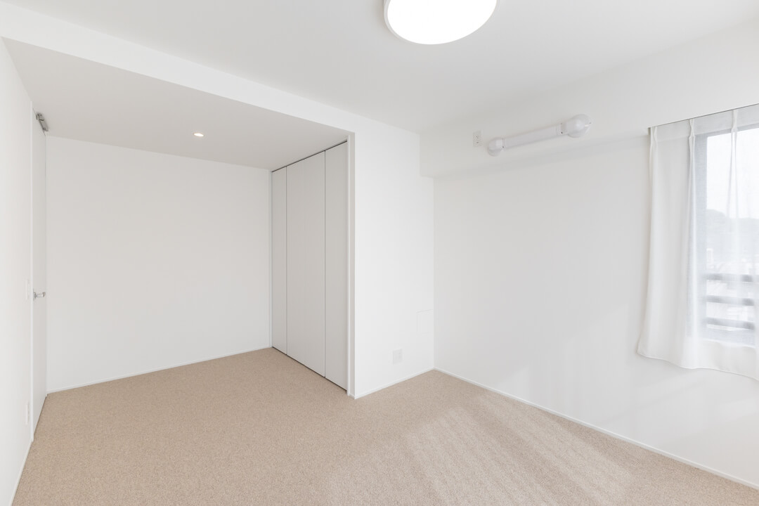 お隣にあるのは約5.9帖の寝室3。南西2面採光の明るいお部屋です。クローゼットは開口部分が大きく、荷物を出し入れしやすいのが嬉しいポイント。寝室としてはもちろん、ワークスペースや趣味部屋など、ライフスタイルに合わせて活用できる空間です。