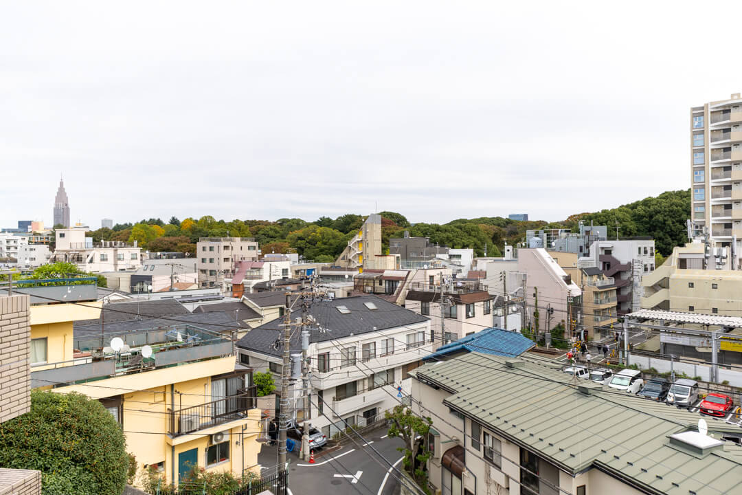 バルコニーはLDKと寝室1の2ヶ所にあります。合計17㎡超の広々とした空間。高台にあるため、2階ながらも開放的な眺望が魅力的です。東側には代々木公園の豊かな緑を望めますよ。穏やかな眺めで、ほっと一息つける場所になりそうです。