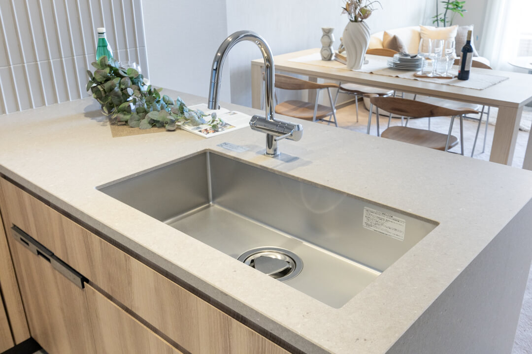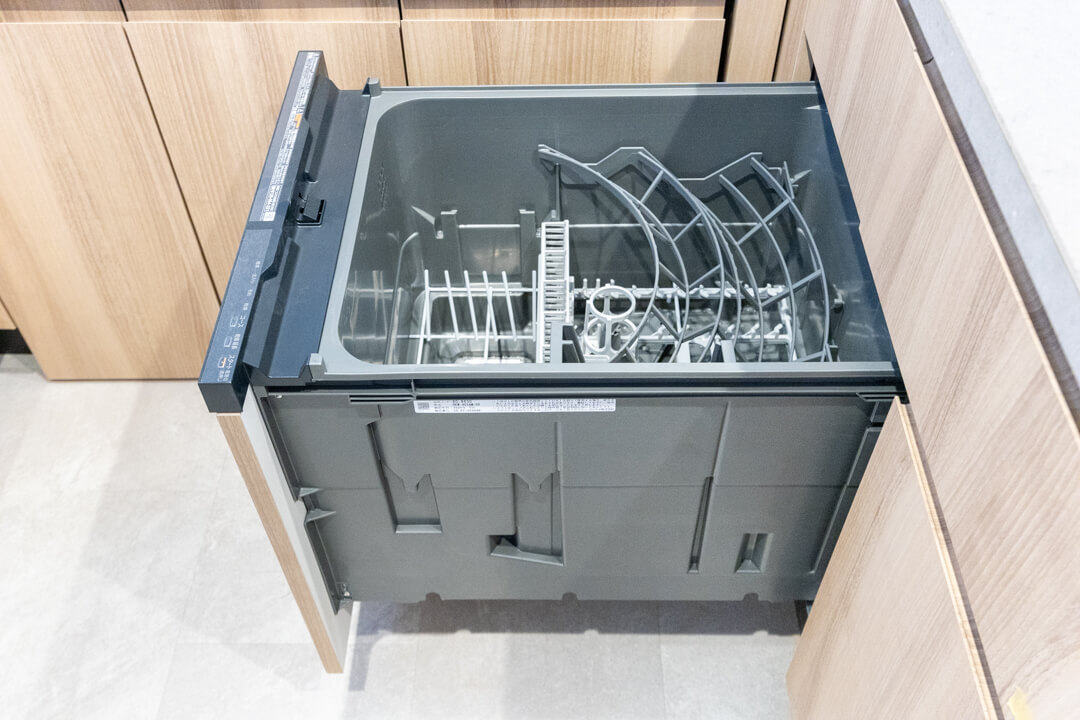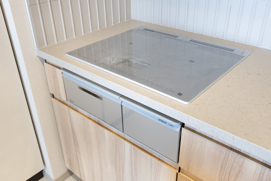 3口IHクッキングヒーター、グリル、食洗機付きと設備面も充実しています。シンクも広々としているので野菜などが洗いやすそうですよ。