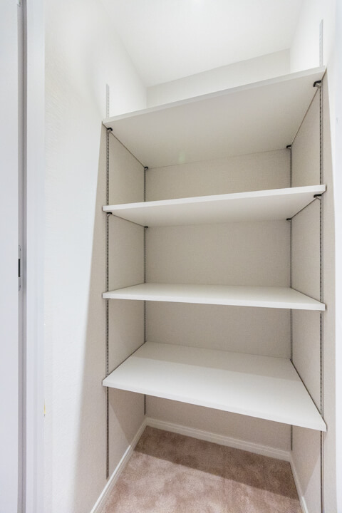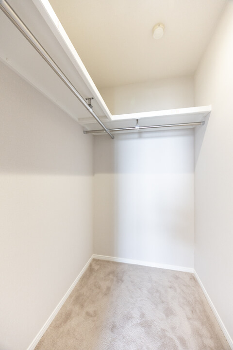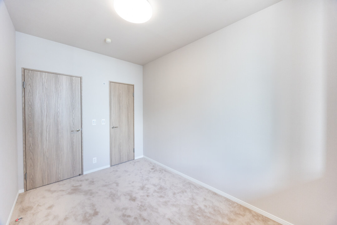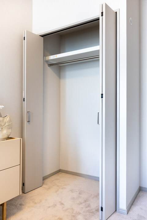 約5.4帖の洋室2は、独立性があって子ども部屋に使えそうな空間です。マンション特有の大きな梁がないため、家具のレイアウトもしやすそう。さらに、こちらのお部屋にもウォークインクローゼットが付いています。洋服やおもちゃなどもすっきりと片付けることができるので嬉しいですね。