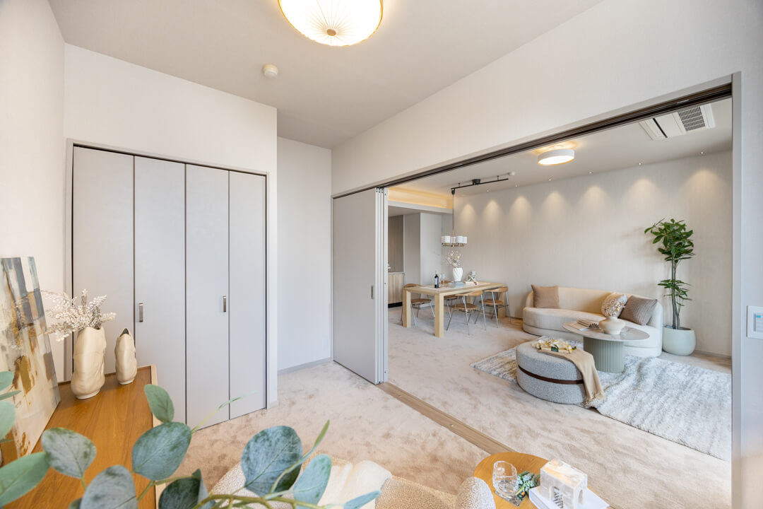 洋室3との引戸を開閉することによって、その場に応じて空間をフレキシブルに使うことができます。