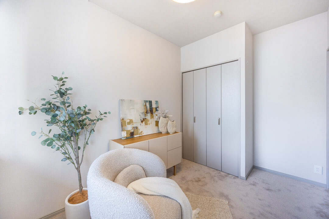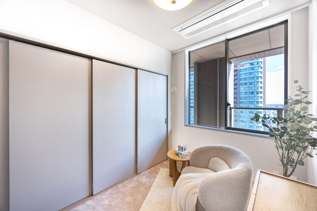 約4.5帖の洋室3は、リビングダイニングキッチンに隣接しています。開口部が広くて物の出し入れがしやすいクローゼット付き、書斎や趣味部屋・リモートワークにもぴったりです。