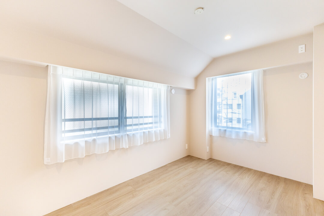 約5.0帖の洋室2。窓が多くてやわらかな自然光が差し込みます。クローゼット付きで収納スペースもしっかり確保。子ども部屋にいかがでしょうか?