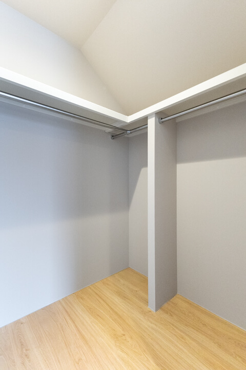 約6.0帖の洋室1は主寝室に。2面窓で採光・通風良好です。WIC(ウォークインクローゼット)完備で収納豊富。衣類はもちろん、トランクケースやゴルフバッグといった大きな荷物も収納でき、居室空間を広々と使うことができます。WIC内の照明が人感センサー付きなのも嬉しいポイントです。