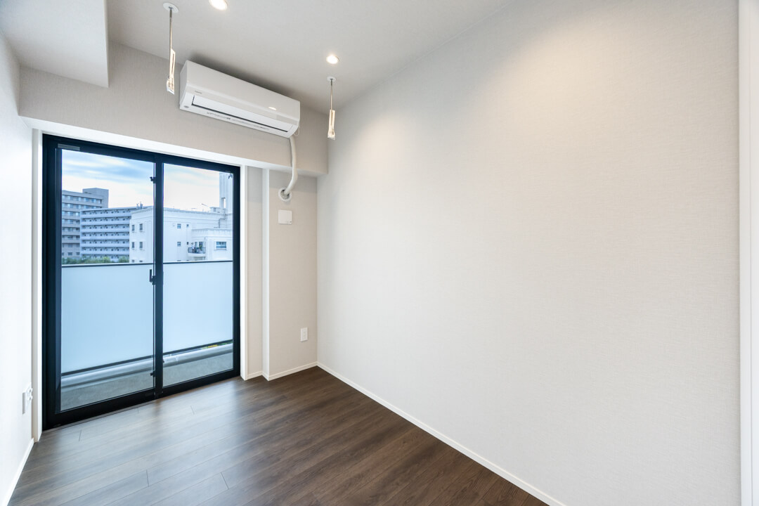 約4.4帖の寝室1は、独立性があるので子ども部屋に良さそうな空間。窓もクローゼットも付いていて過ごしやすいお部屋です。窓側には、室内物干しが設置されているので、雨の日にも便利。
