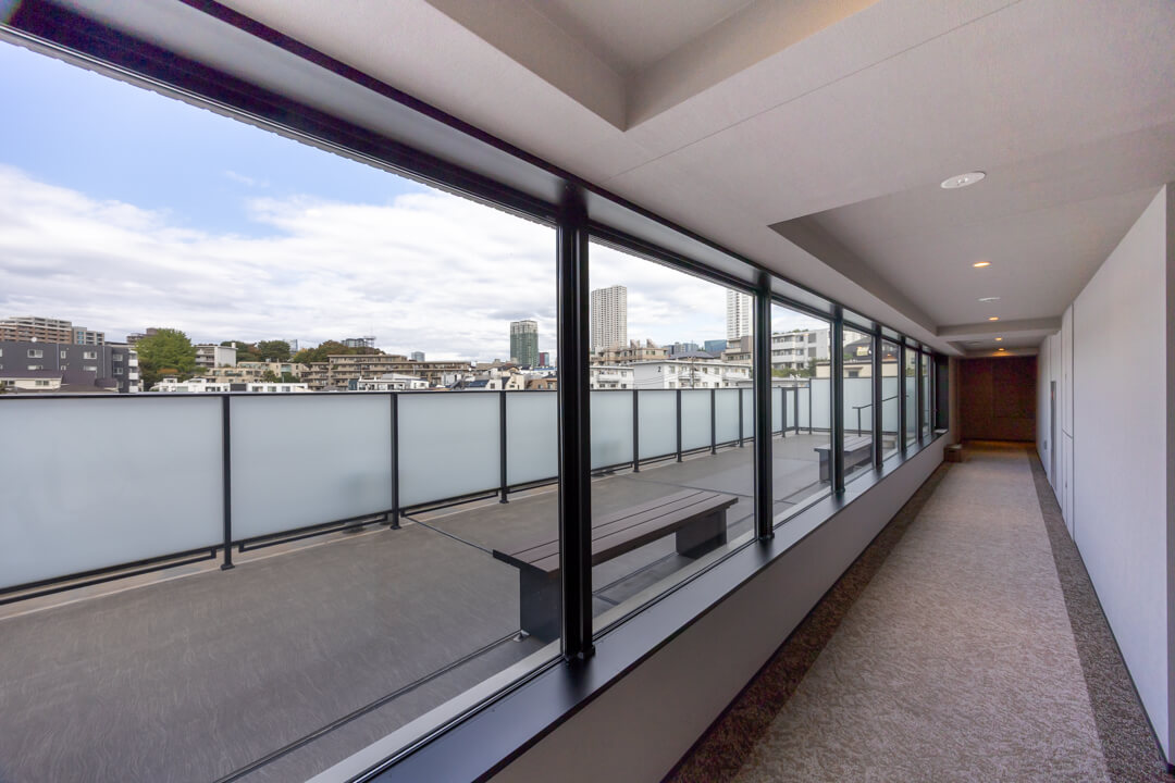 2022年(令和4年)8月竣工と築浅な「ディアナコート池田山公園」。2000㎡を超える敷地は角地にあるため、その形状を活かしてL字型の住棟が配されています。オートロック、防犯カメラ付きでセキュリティ面は安心です。さらに、宅配ボックスが完備されているので、忙しい方でも時間を気にせずに荷物を受け取ることができます。また、細則はありますが、ペットの飼育も可能です。今回ご紹介するお部屋は6階なのですが、6階の共用廊下にはベンチ付きのスカイテラスがあります。日常の気分転換にも◎。